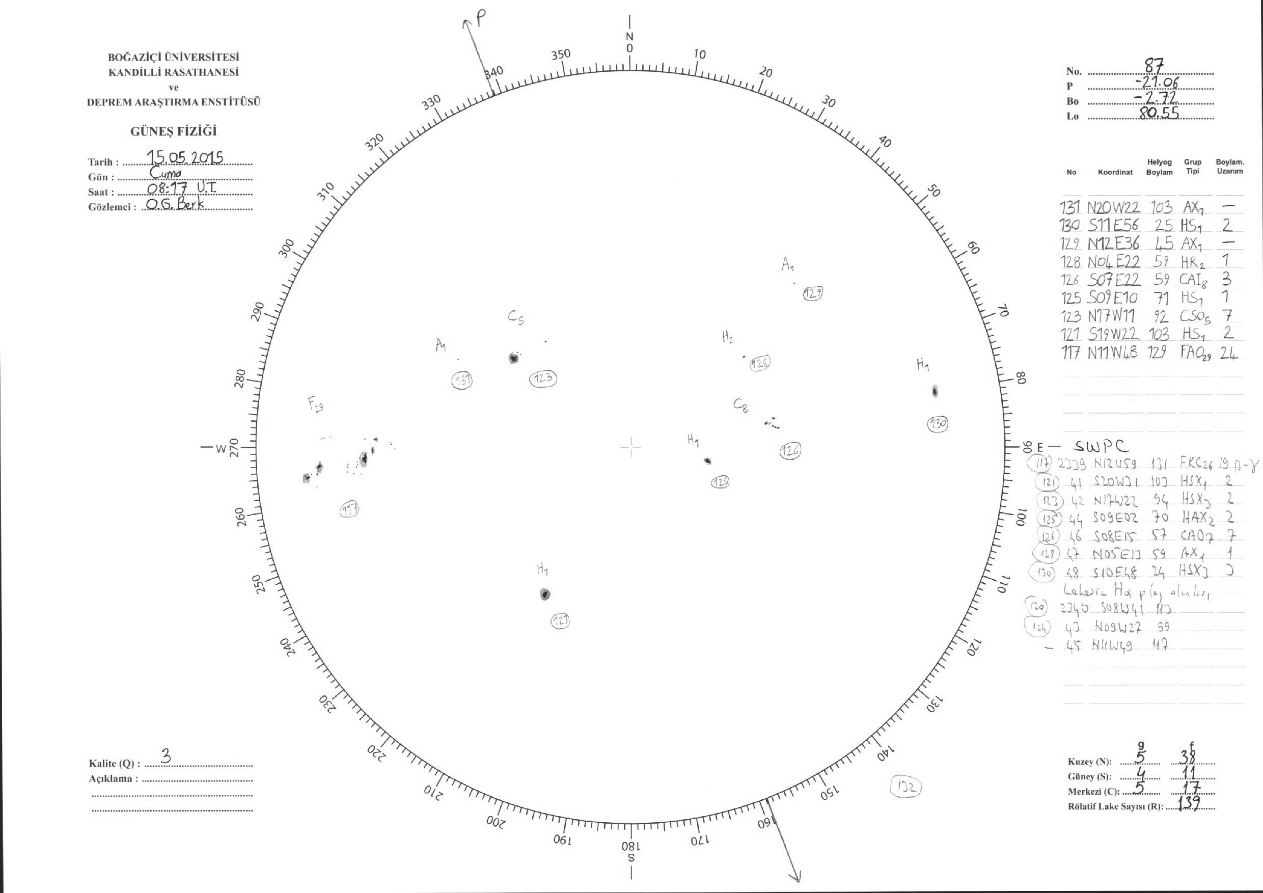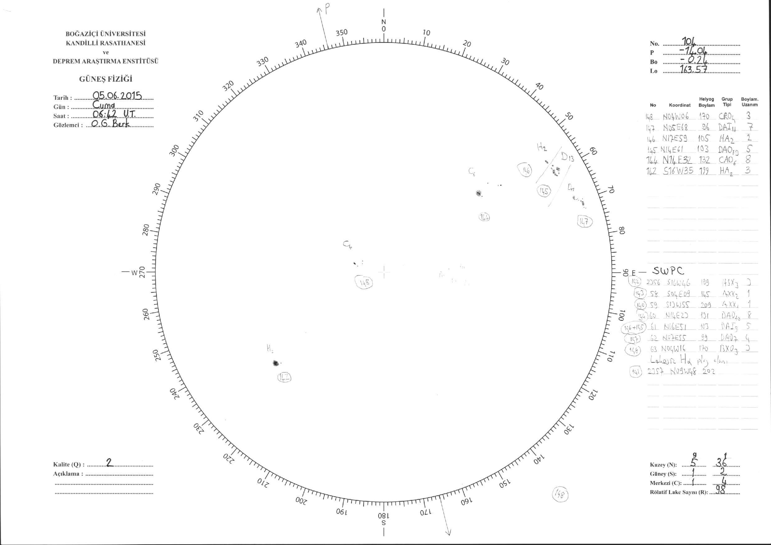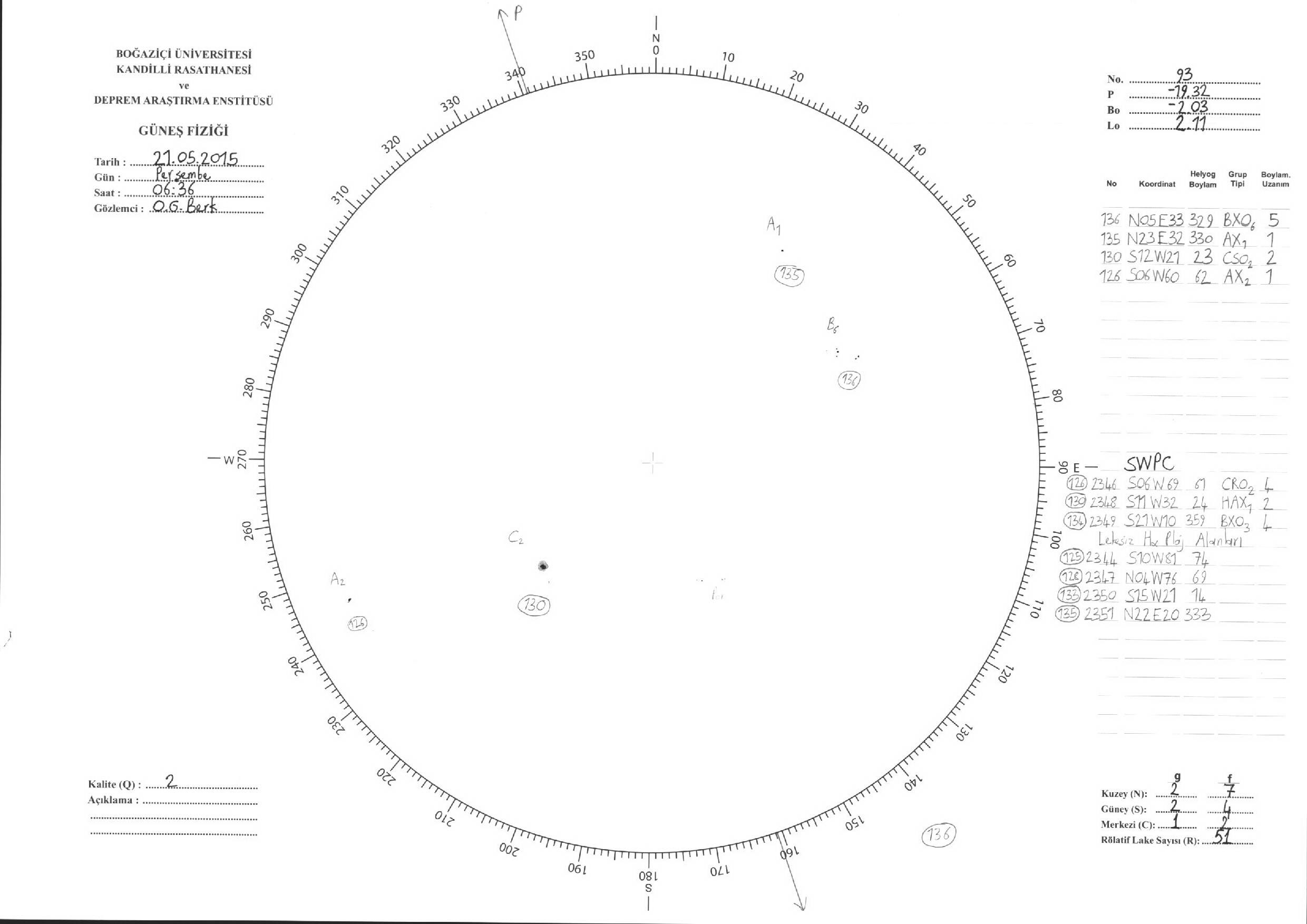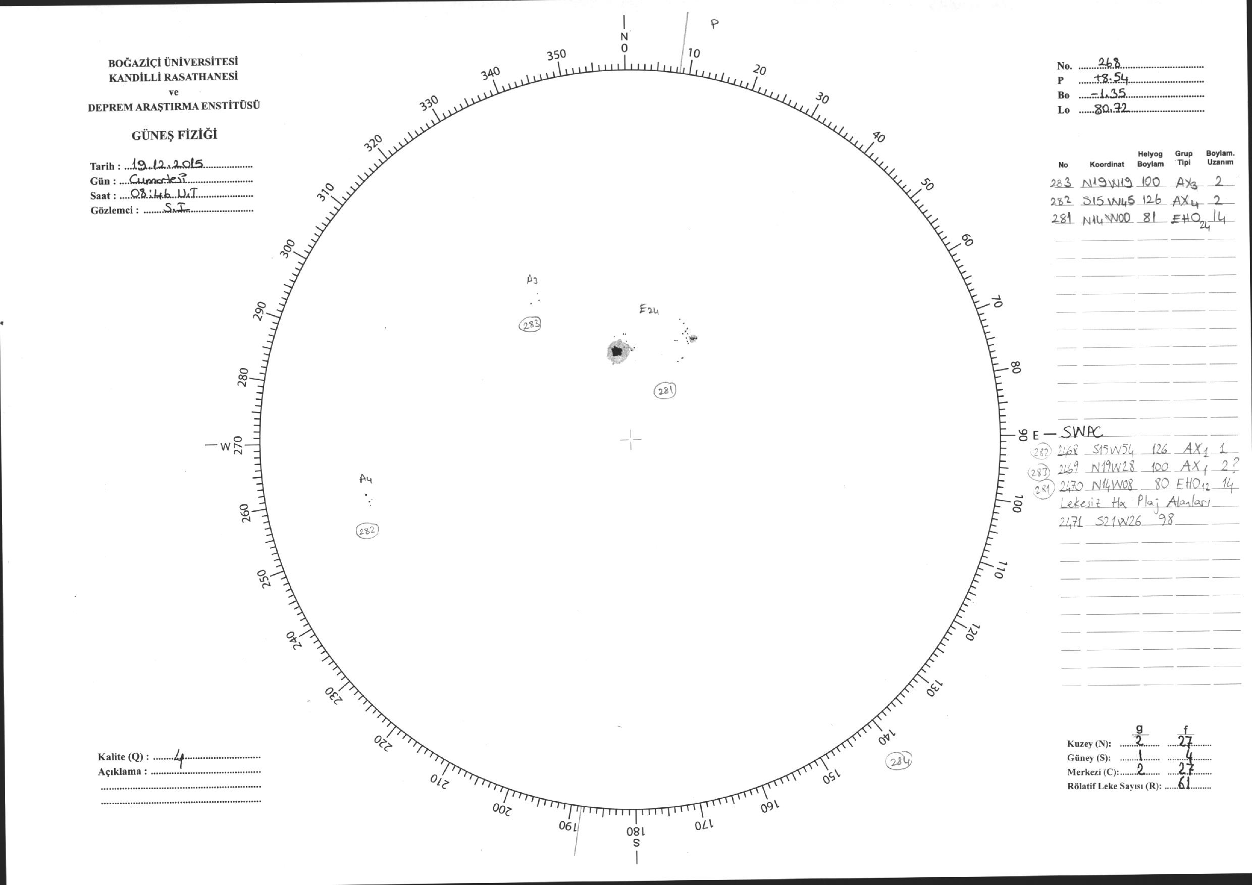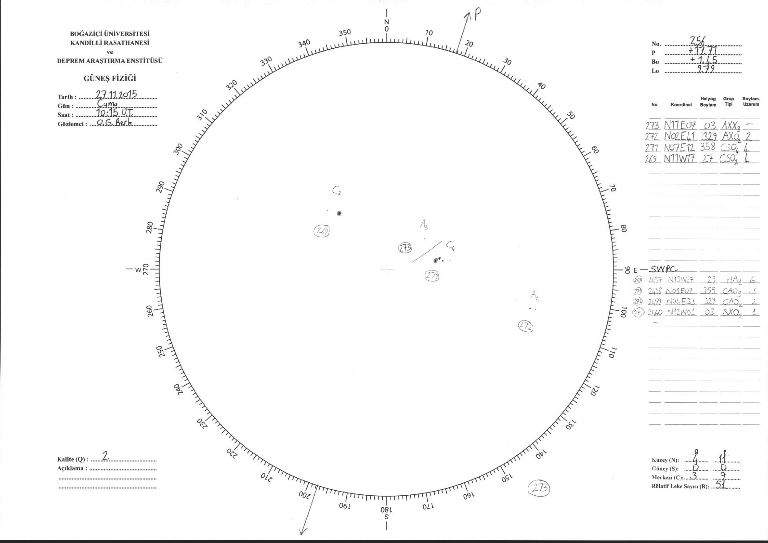 Güneş Lekesi Çizimleri / Kandilli Sunspot Drawings