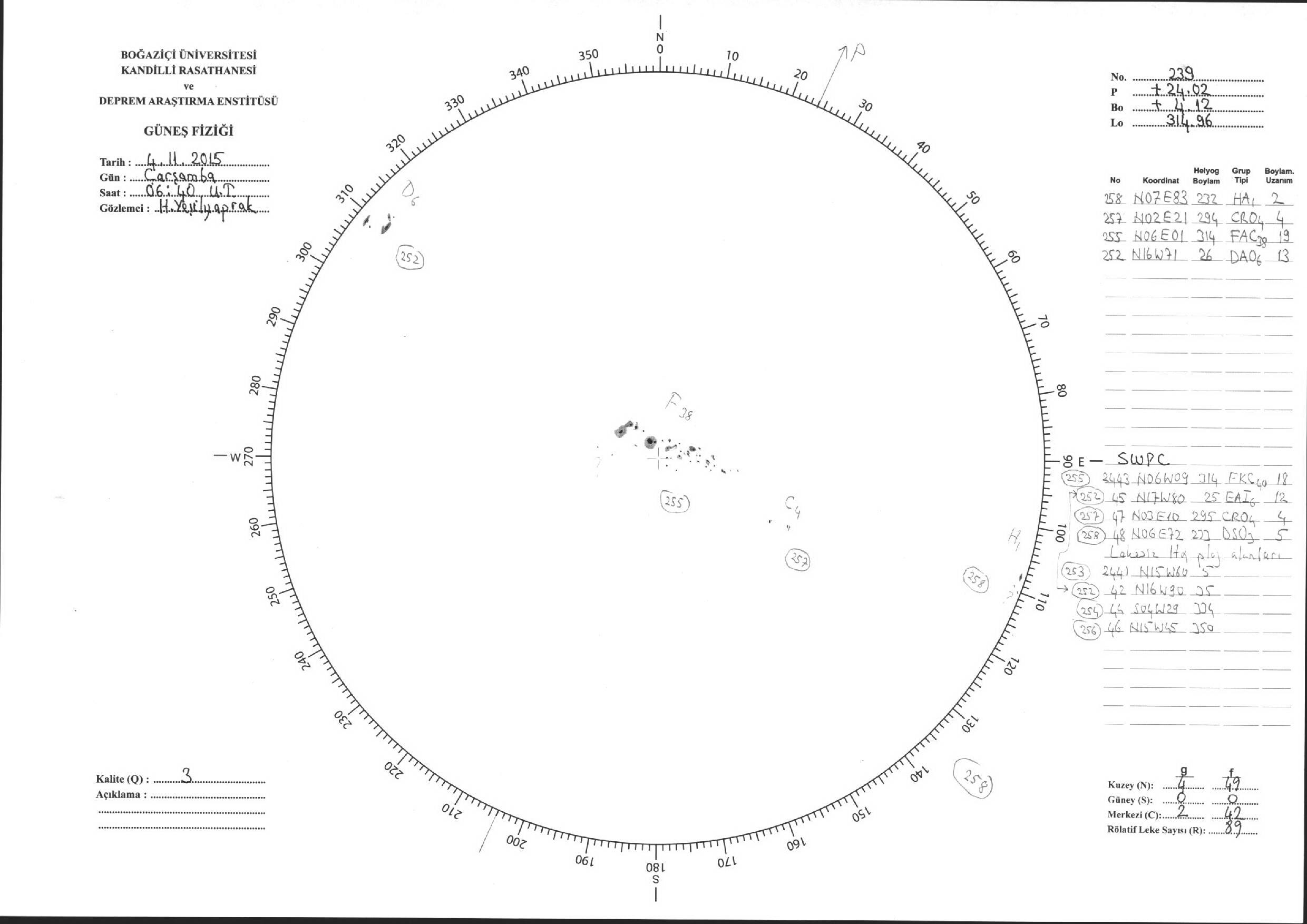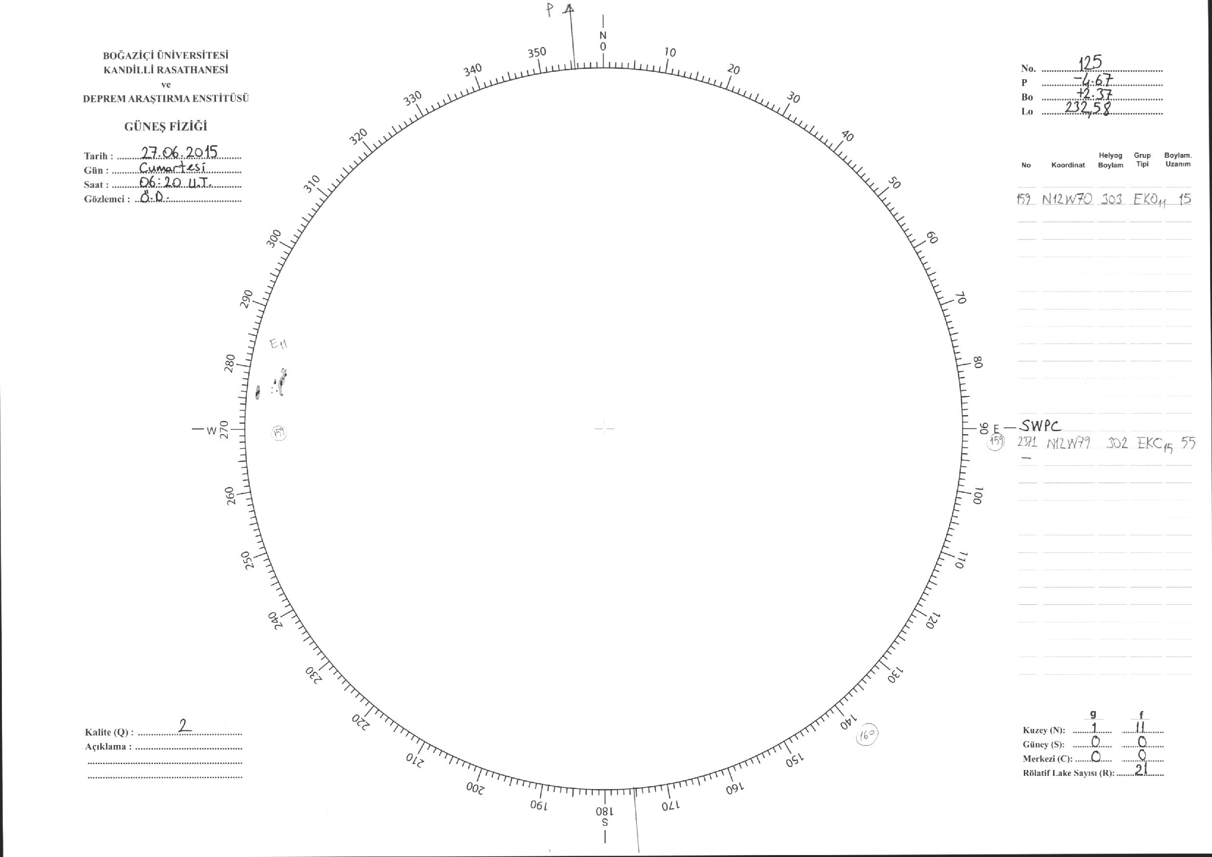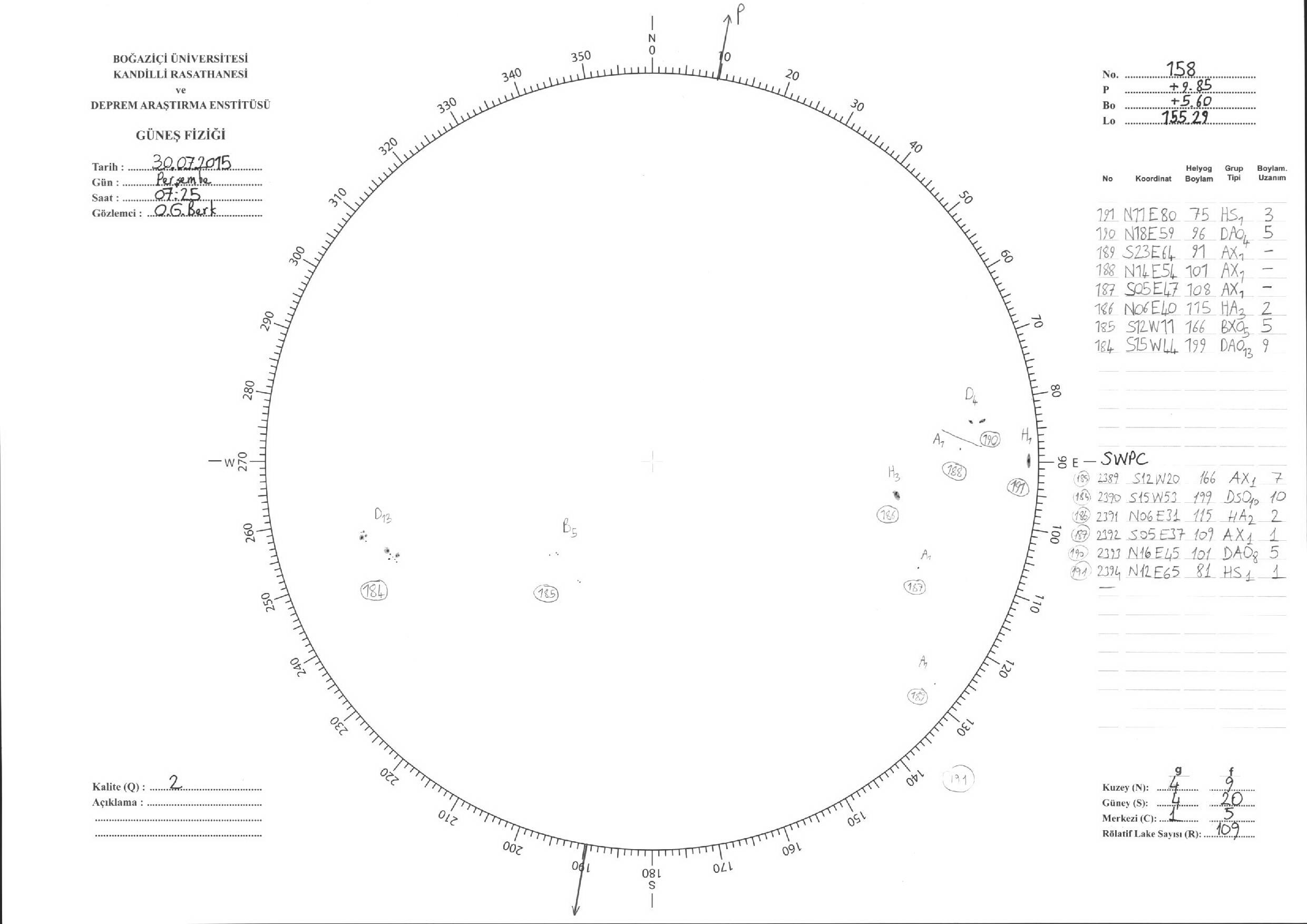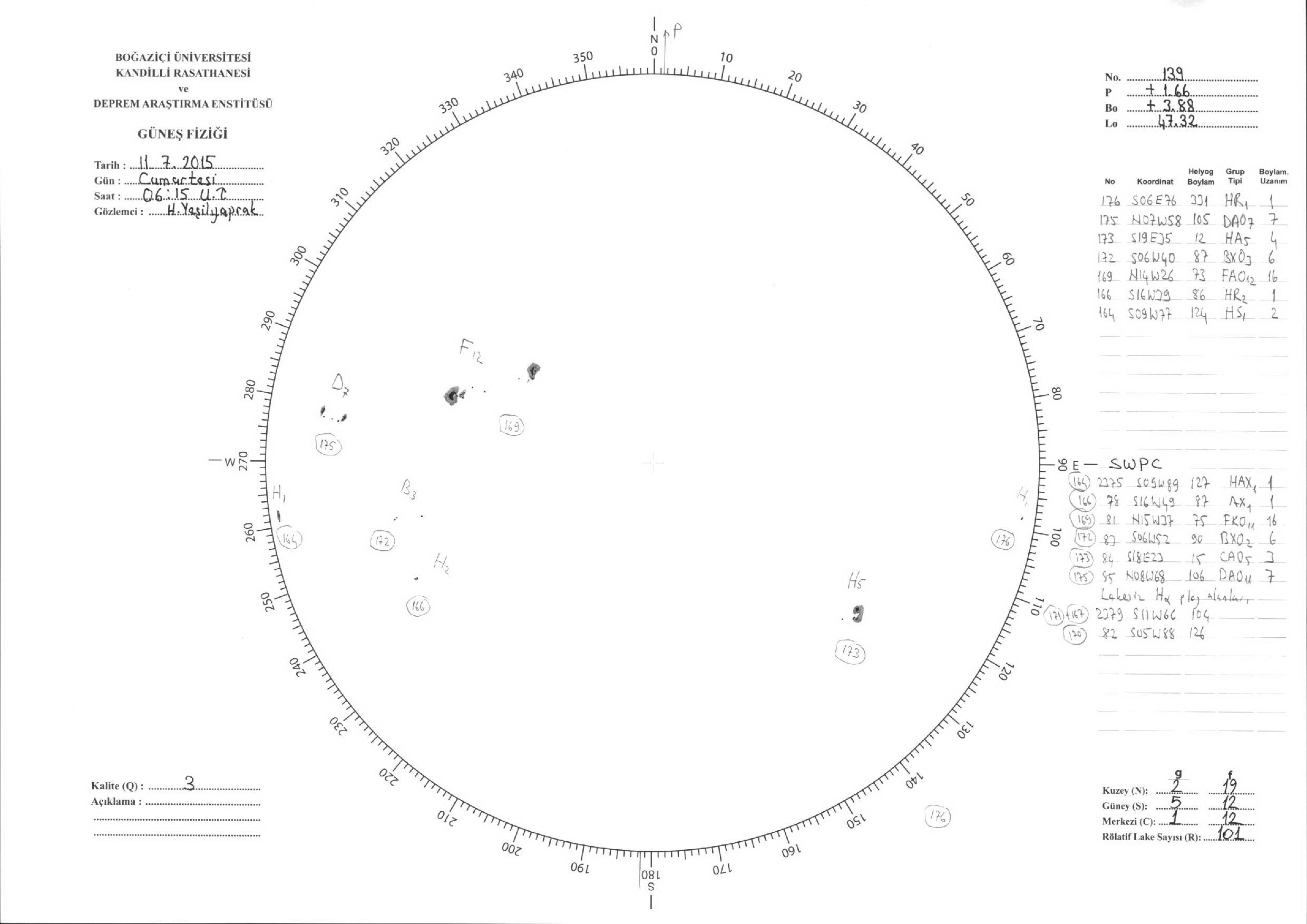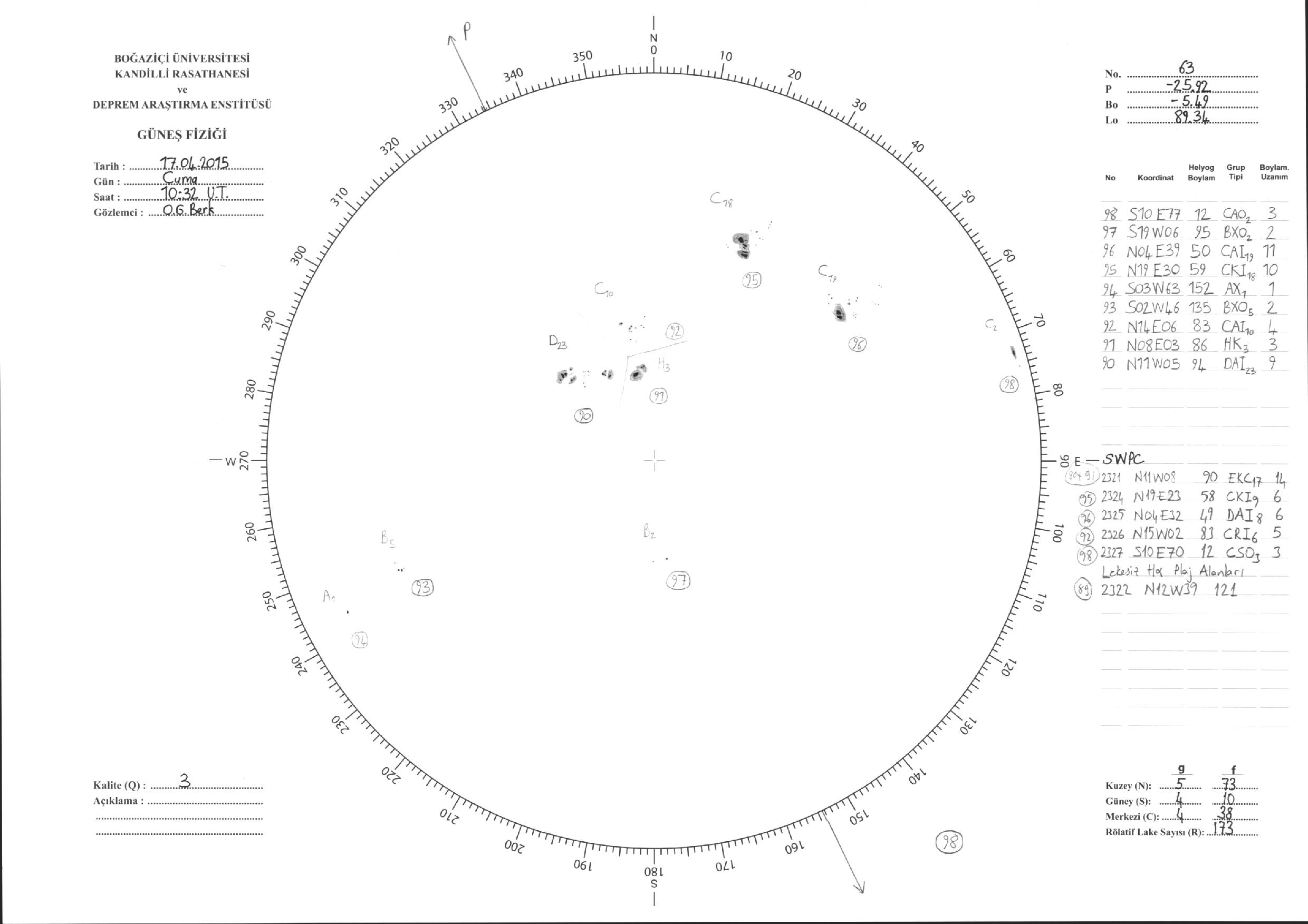 Güneş Lekesi Çizimleri / Kandilli Sunspot Drawings