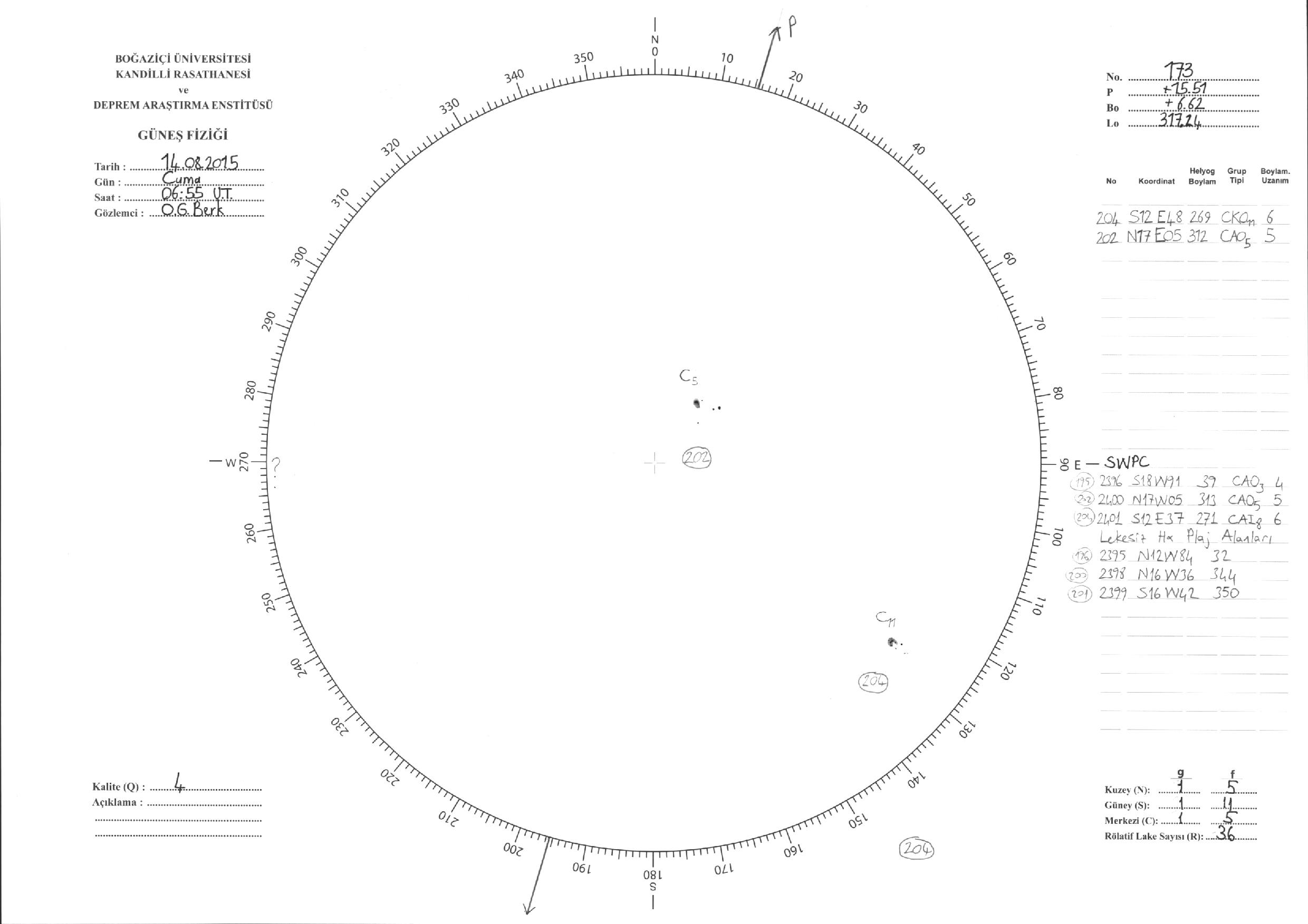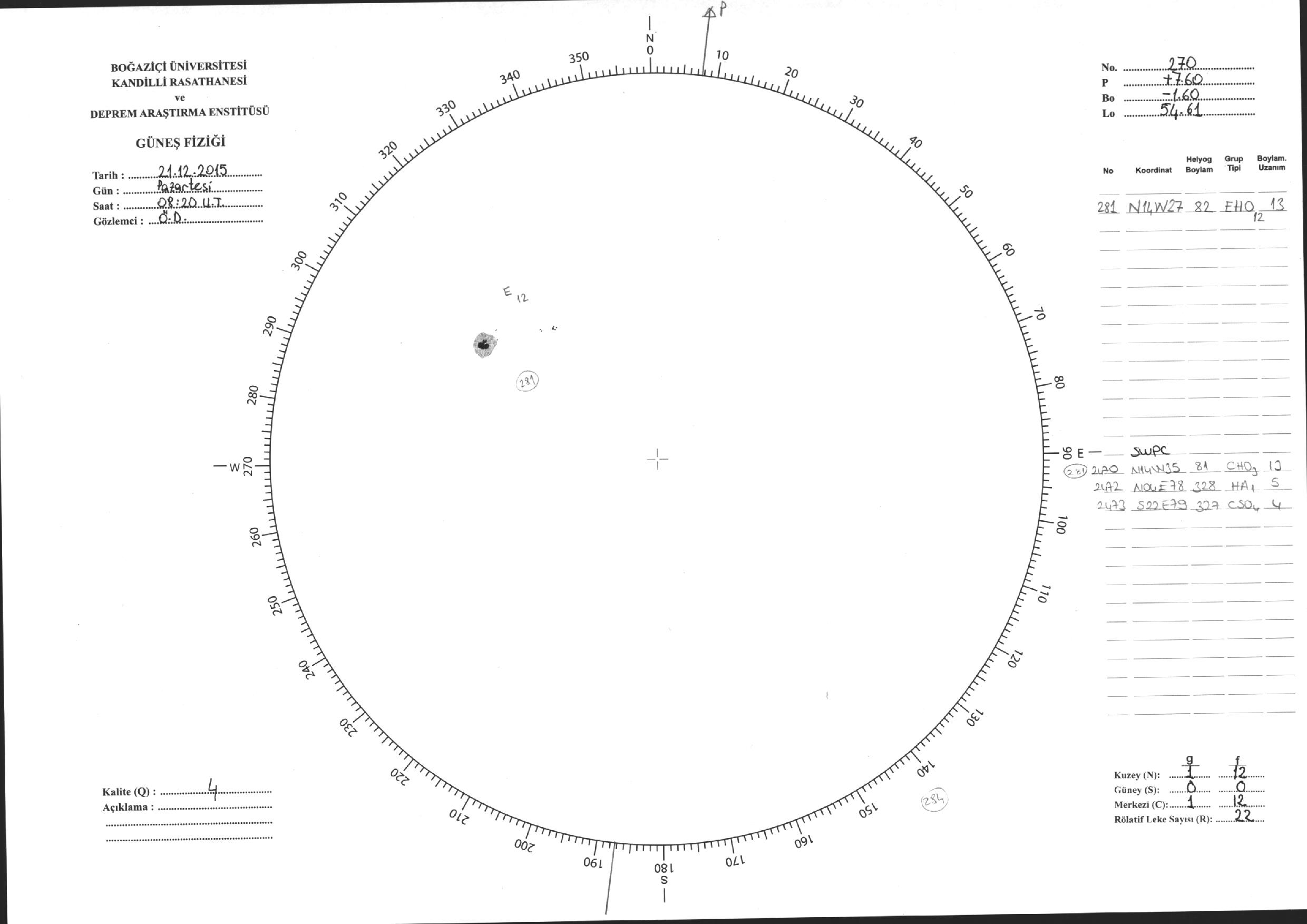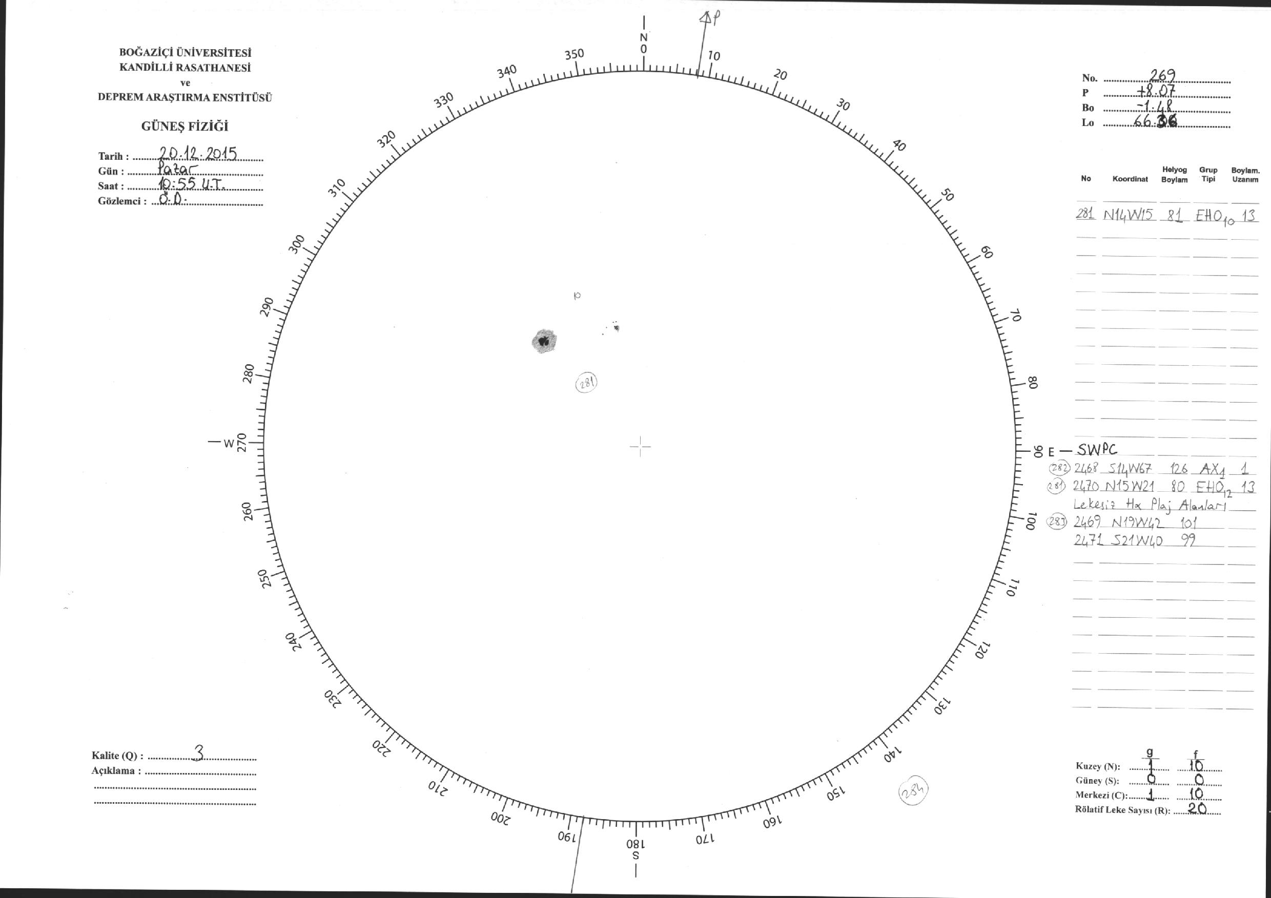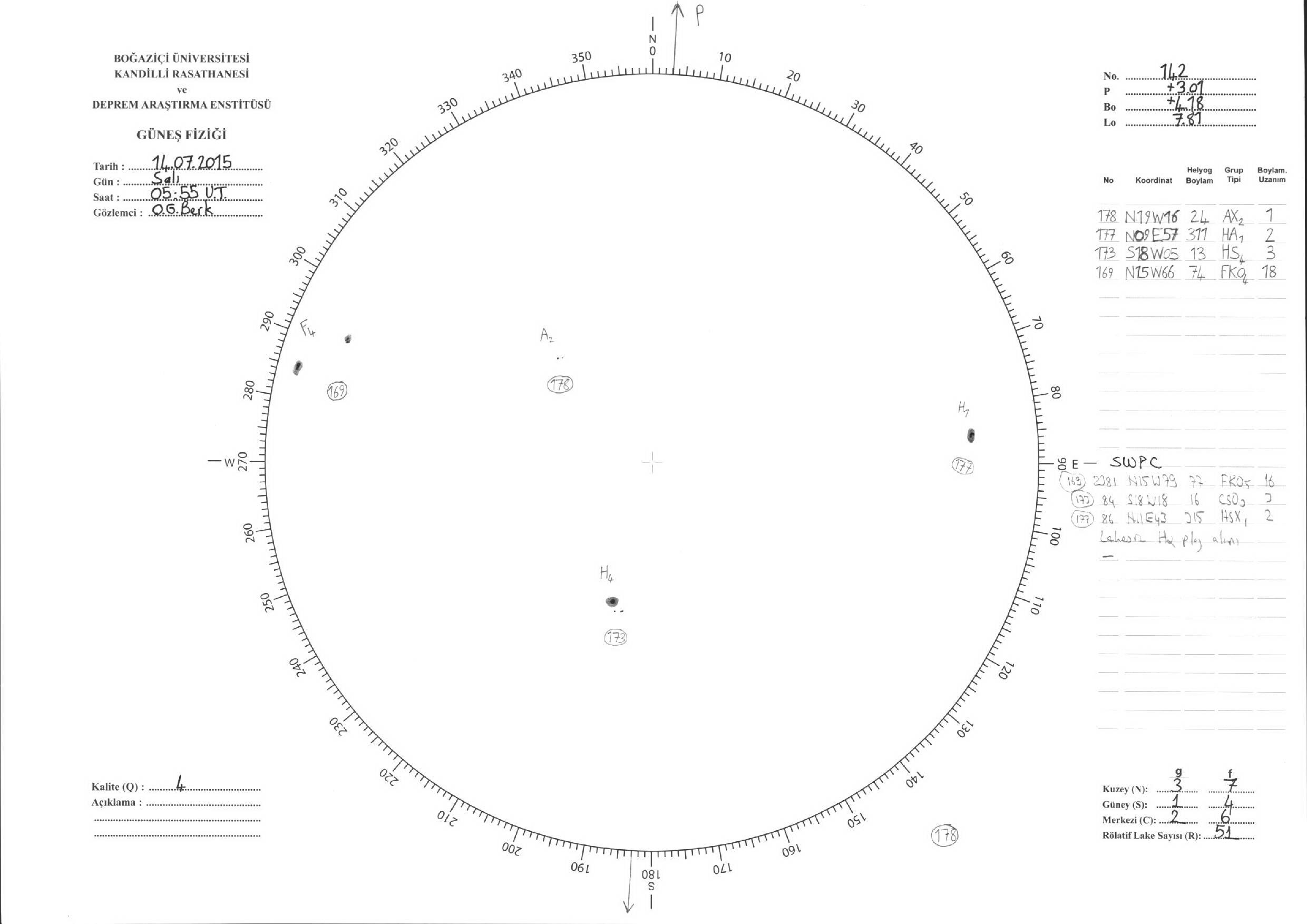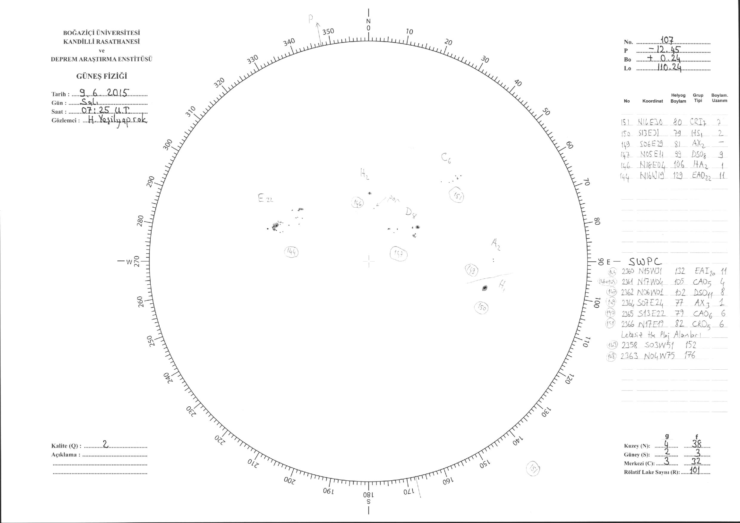 Güneş Lekesi Çizimleri / Kandilli Sunspot Drawings