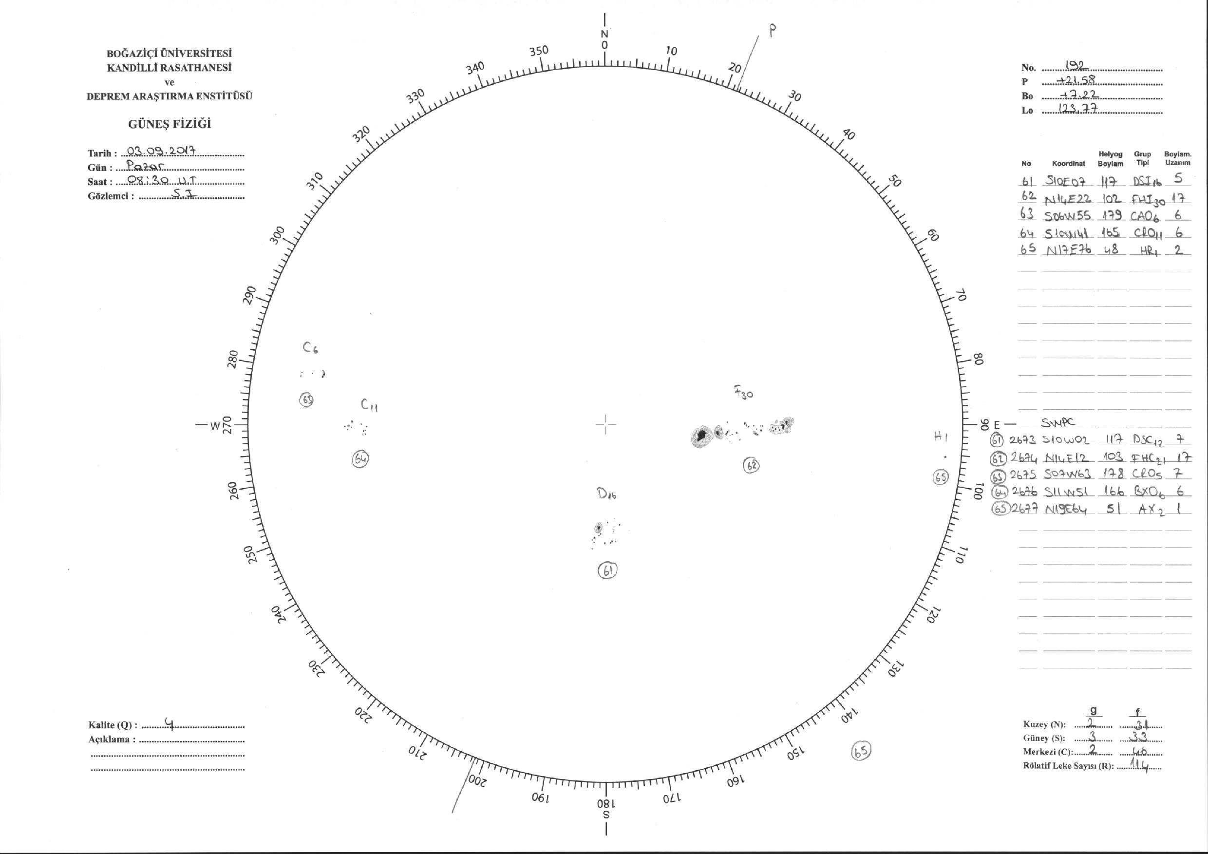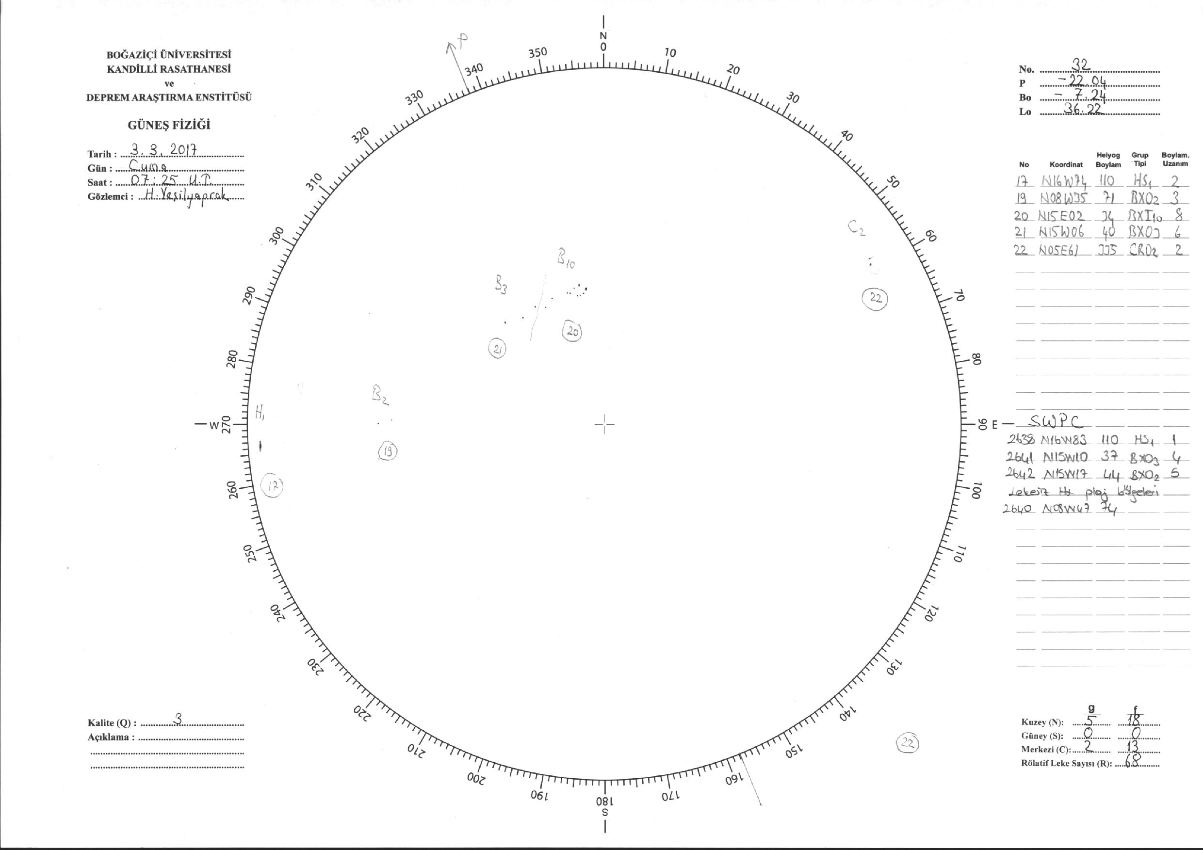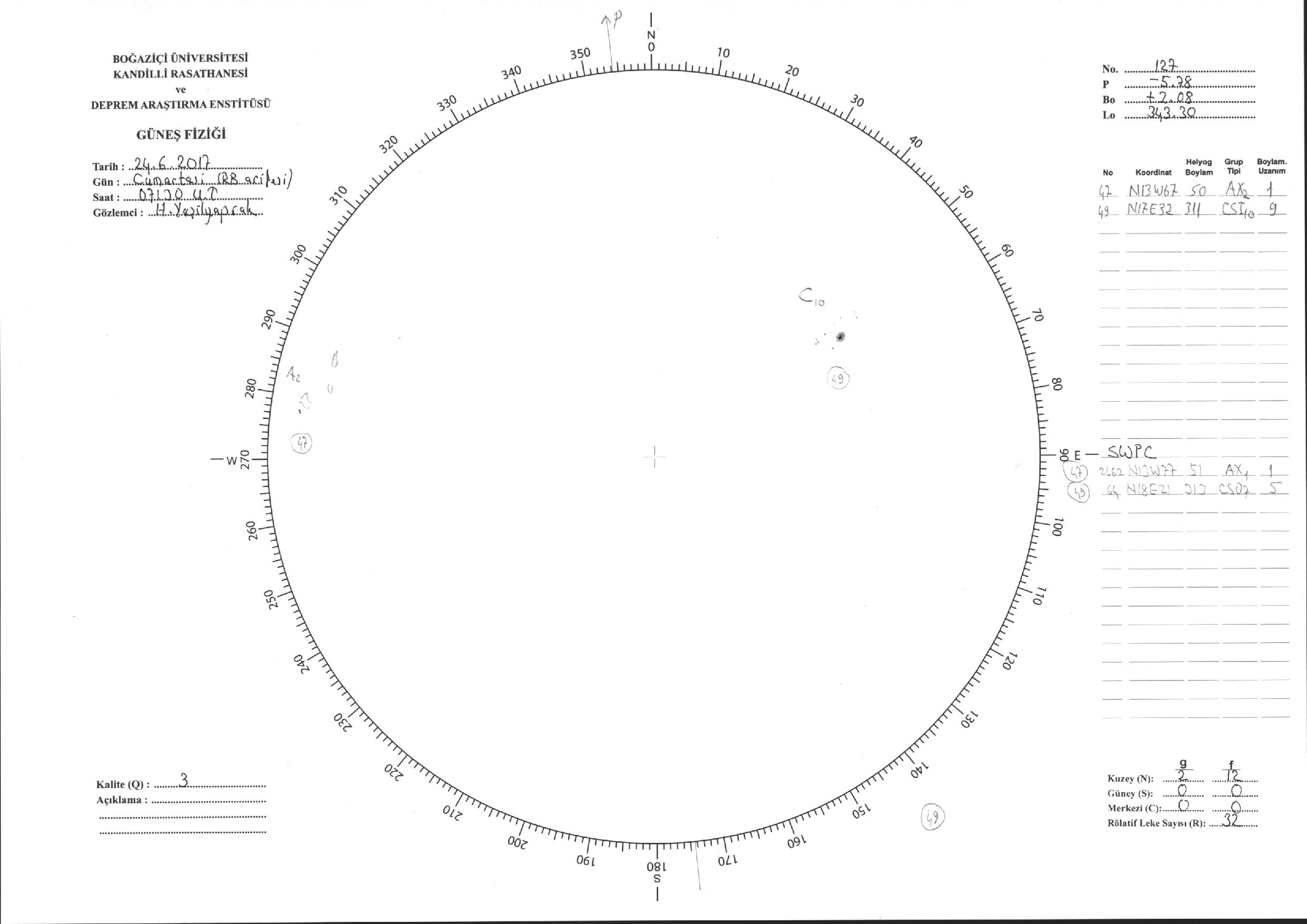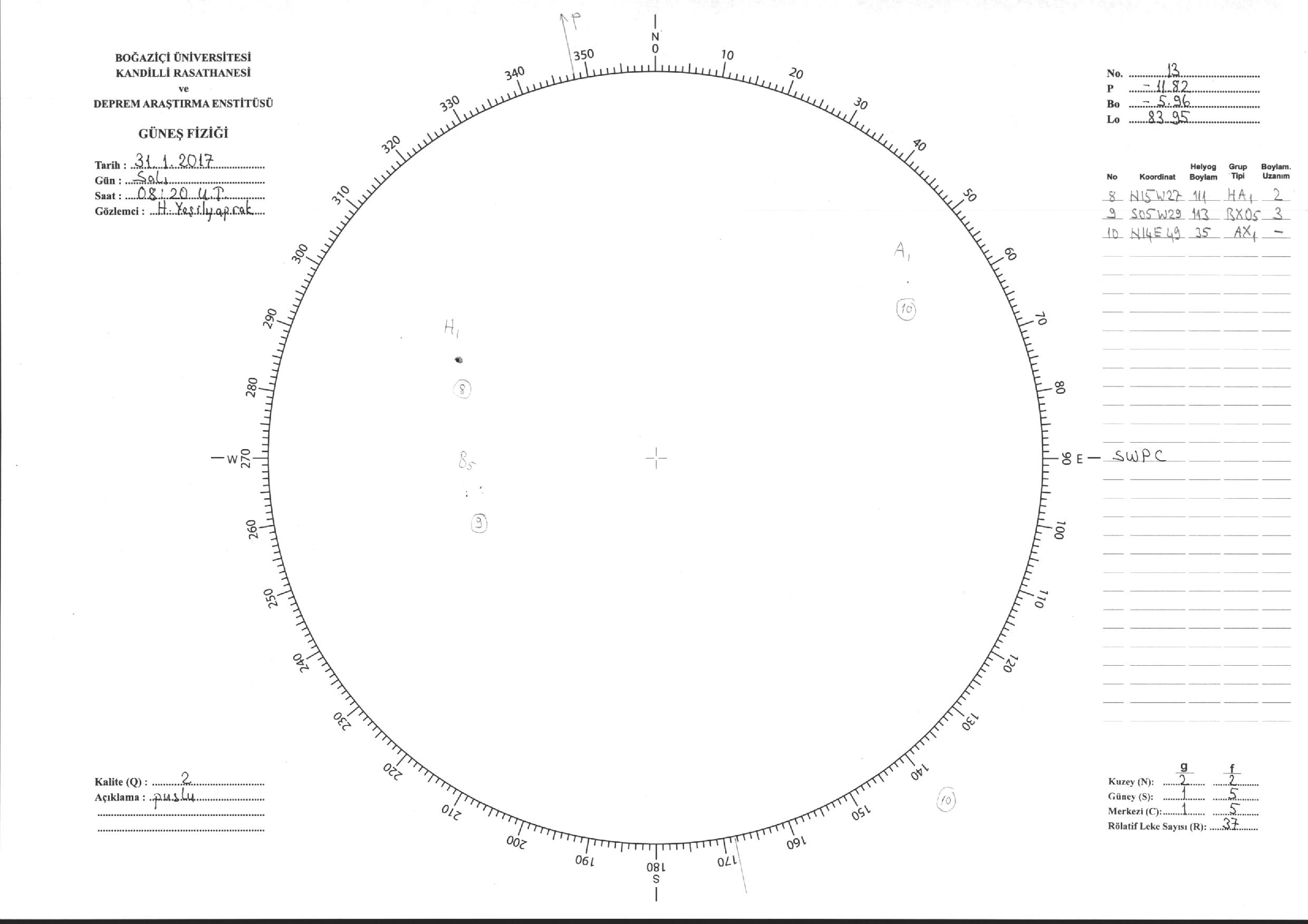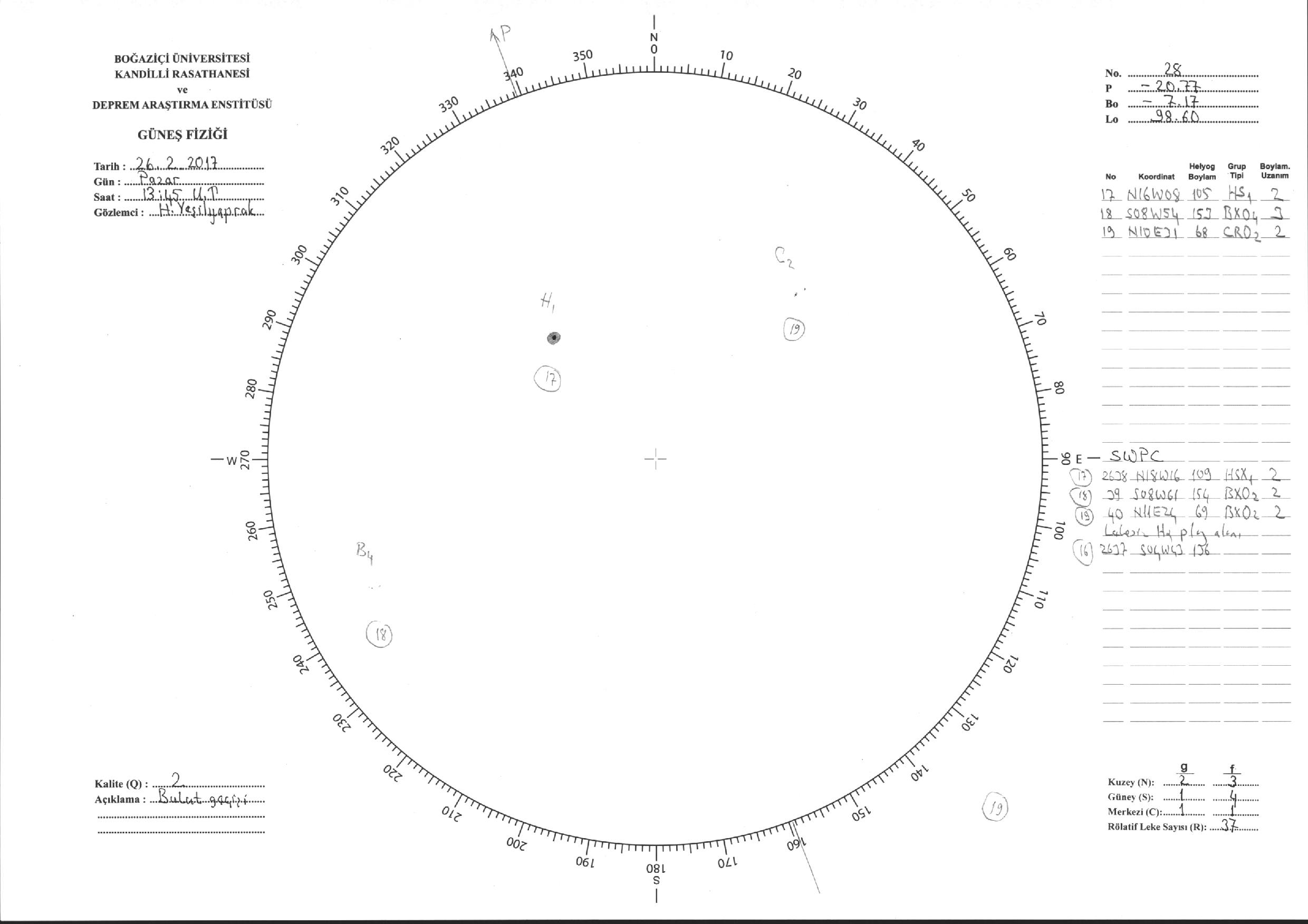 Güneş Lekesi Çizimleri / Kandilli Sunspot Drawings