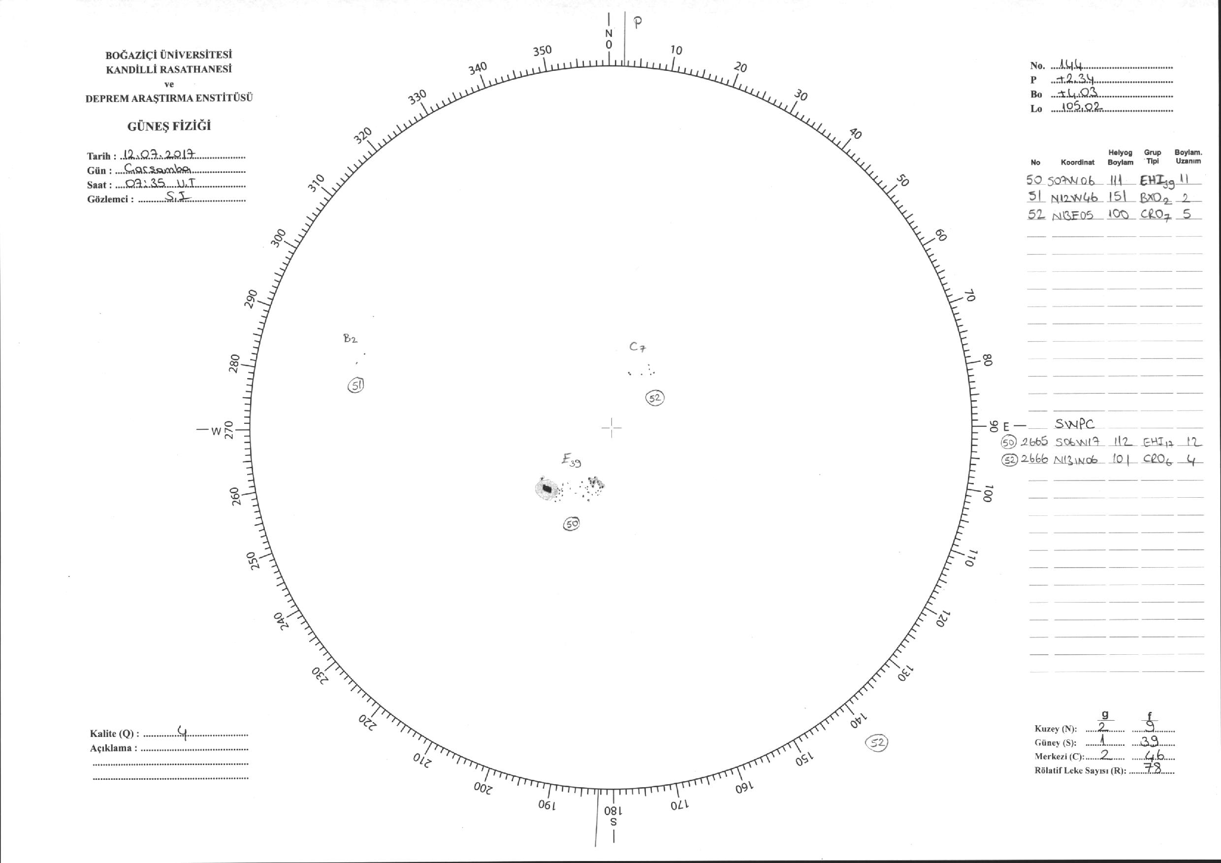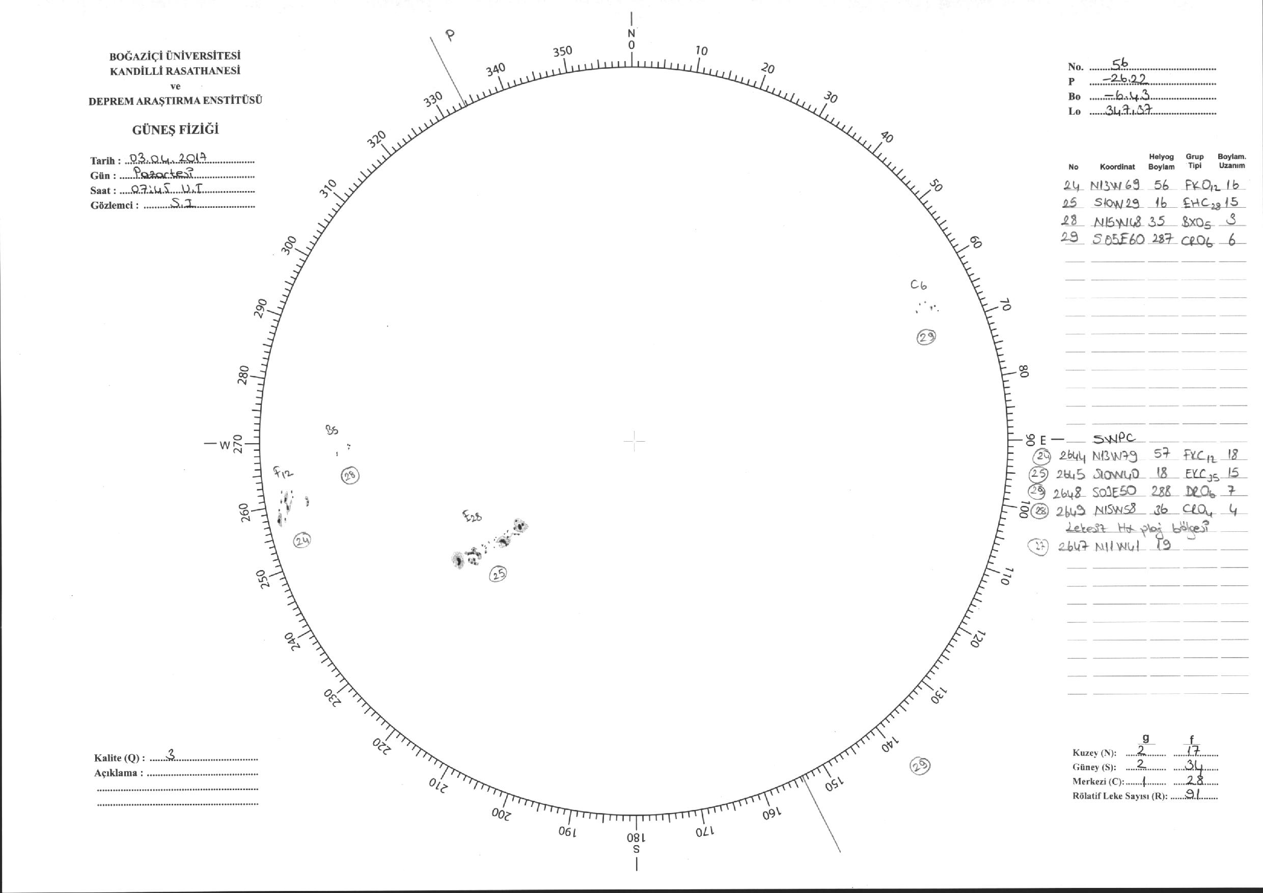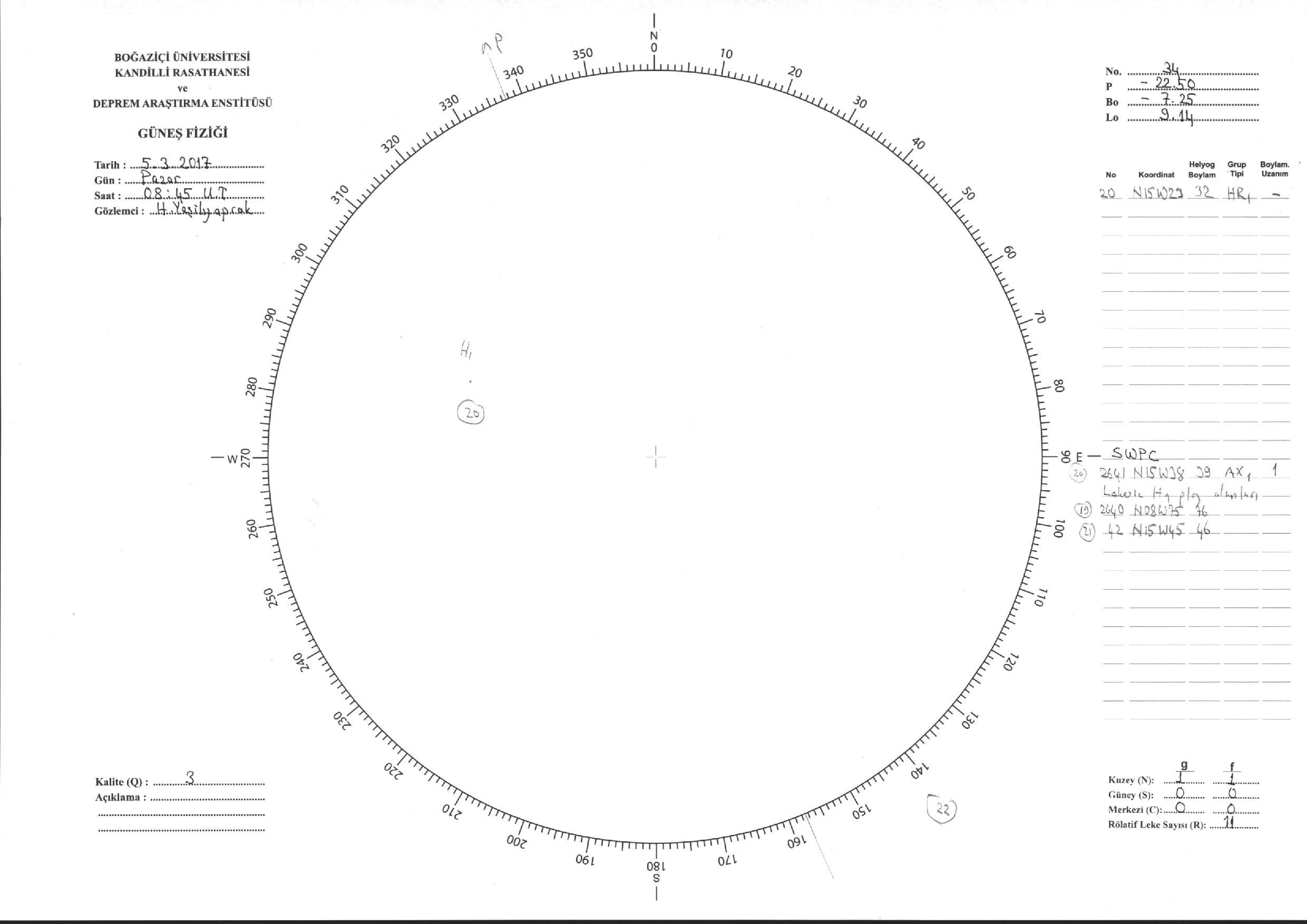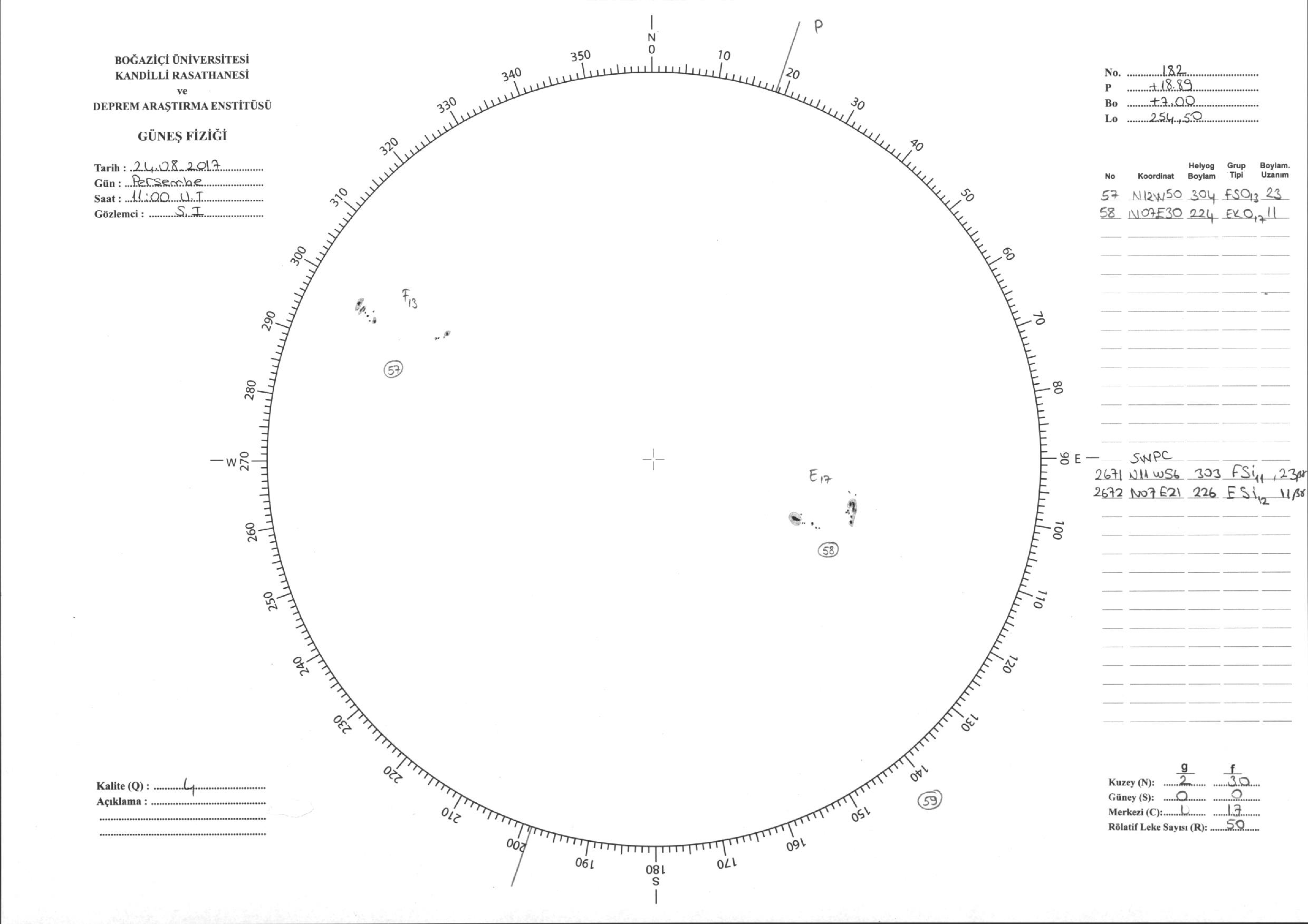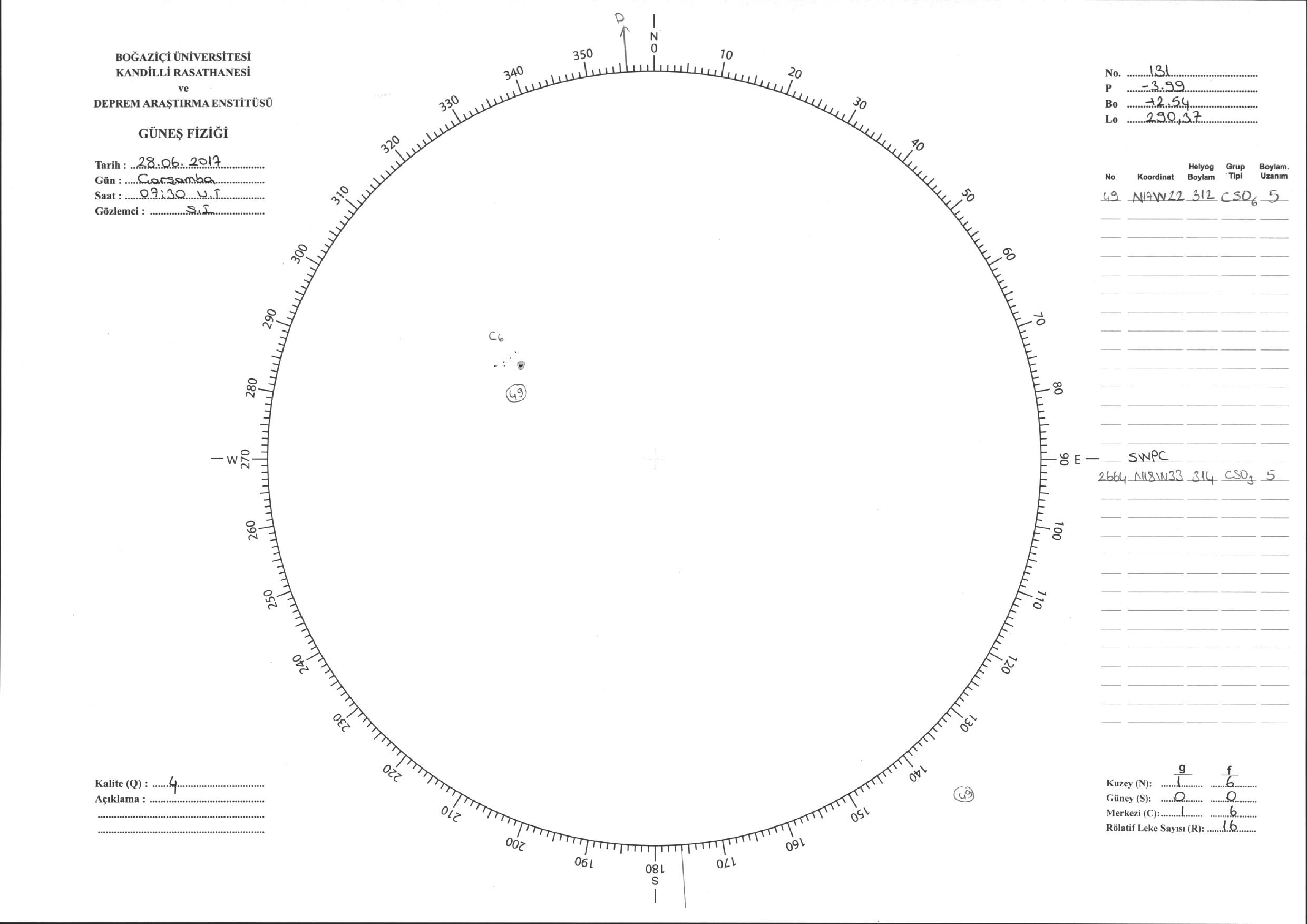Güneş Lekesi Çizimleri / Kandilli Sunspot Drawings