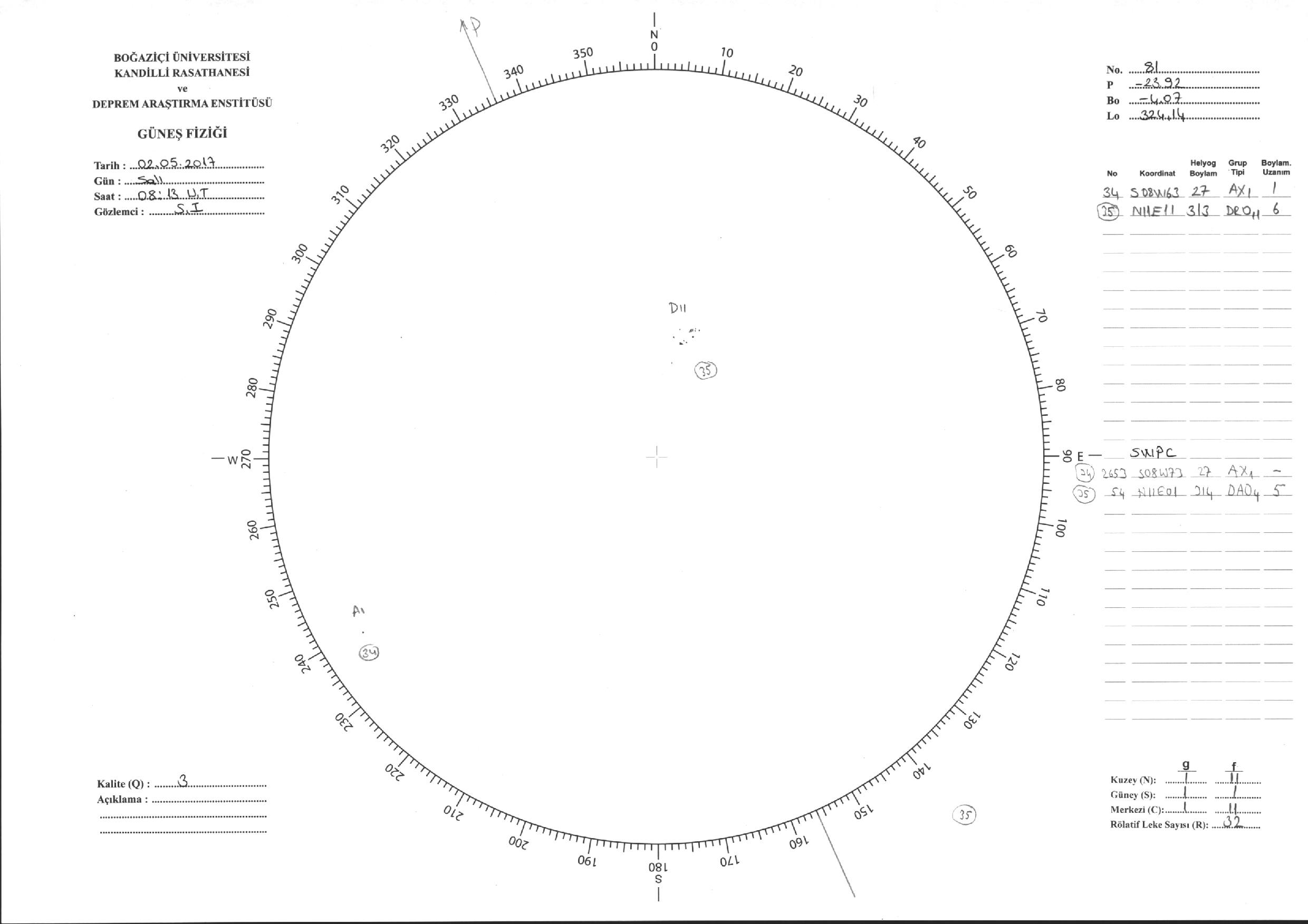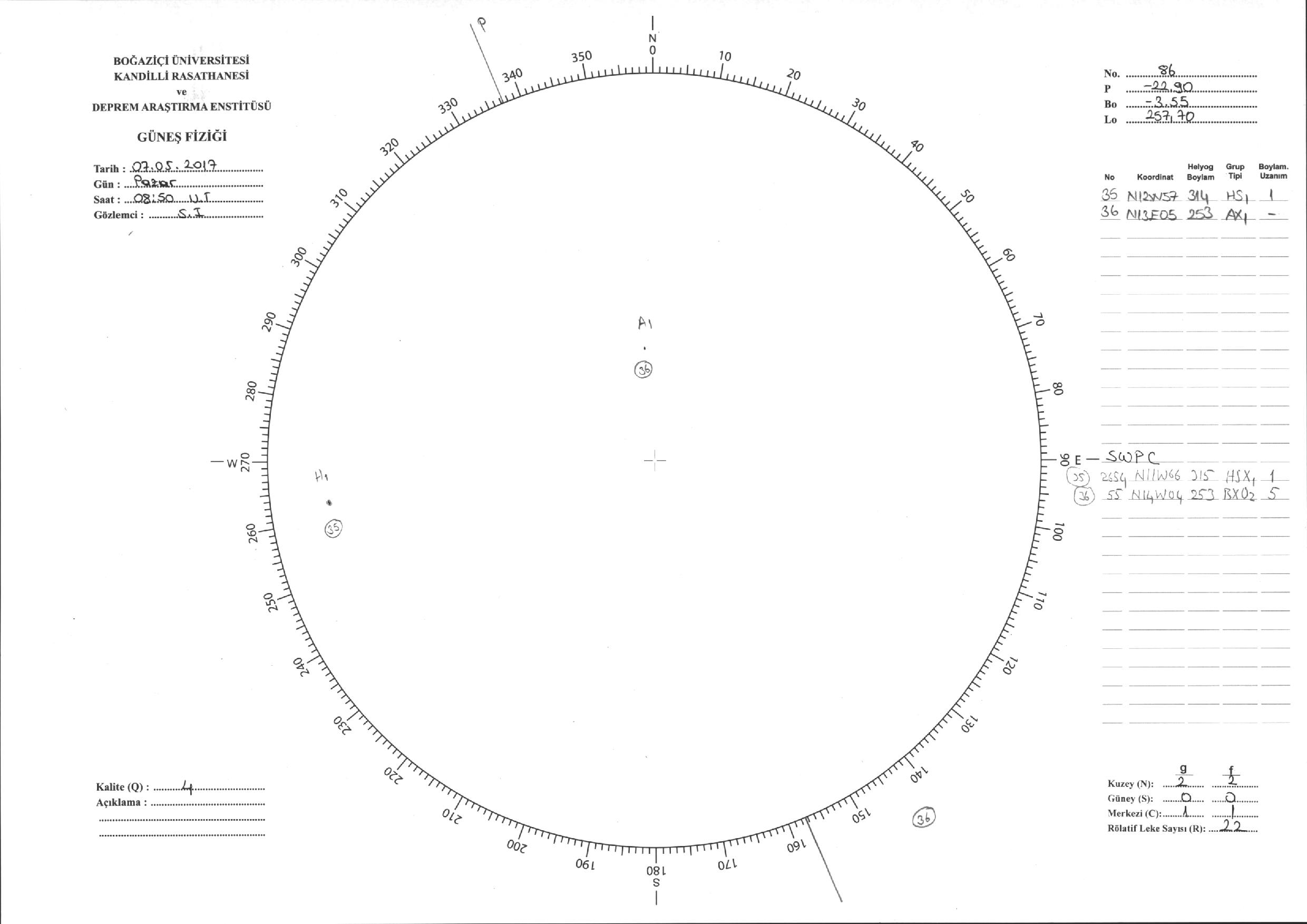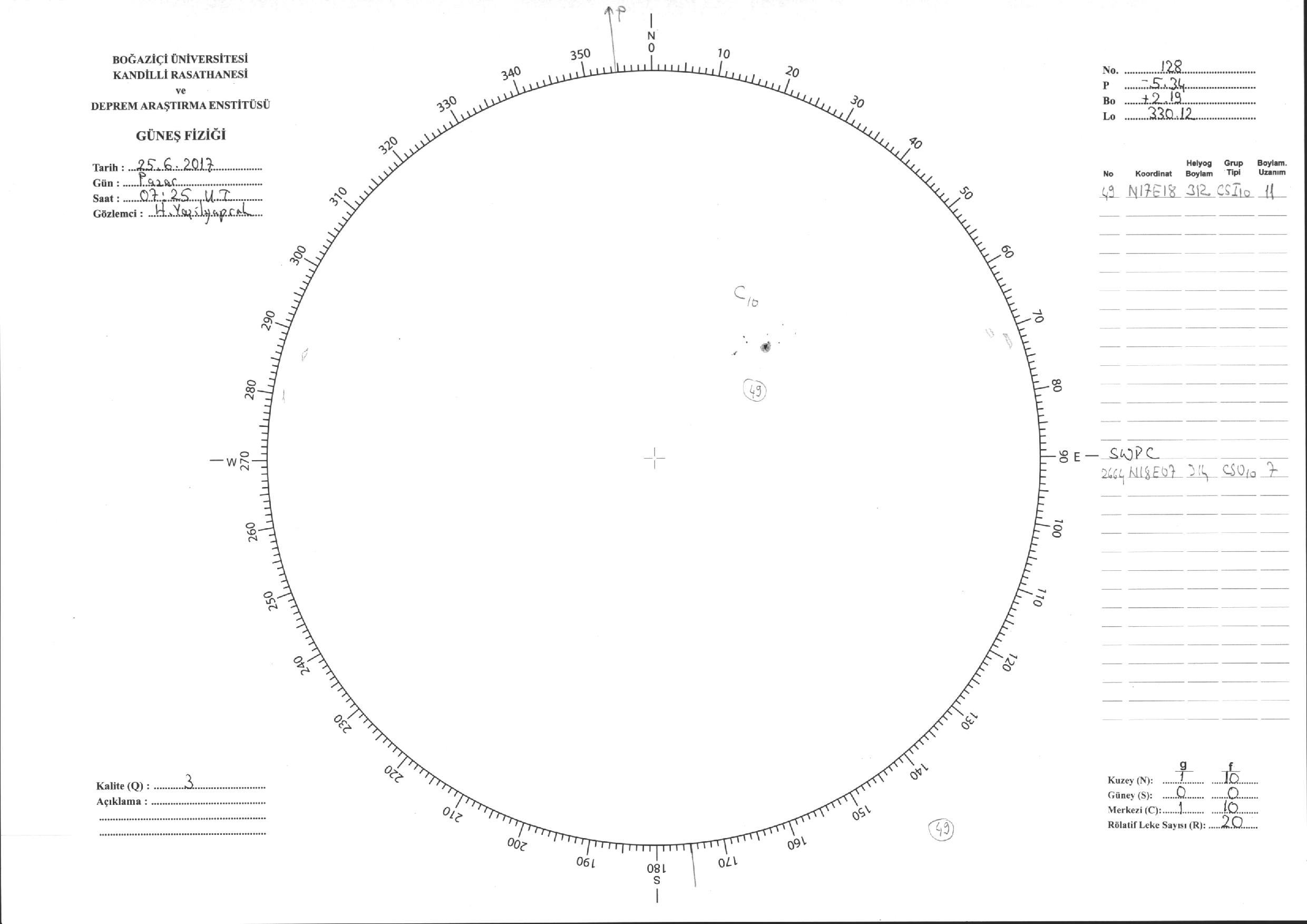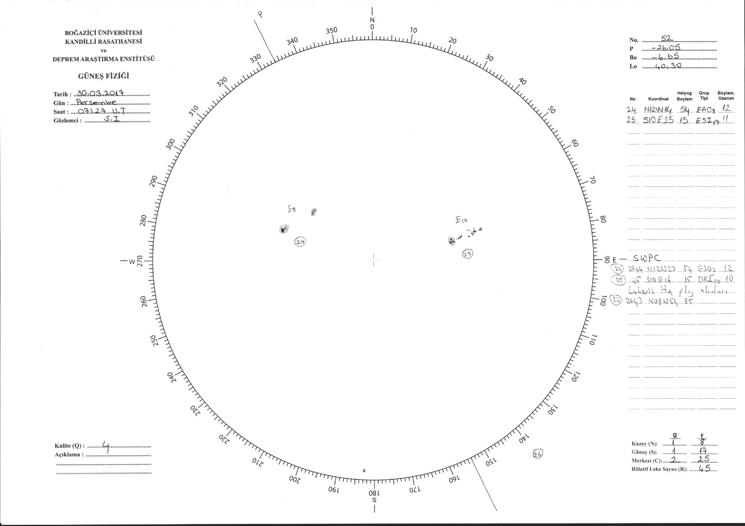Güneş Lekesi Çizimleri / Kandilli Sunspot Drawings