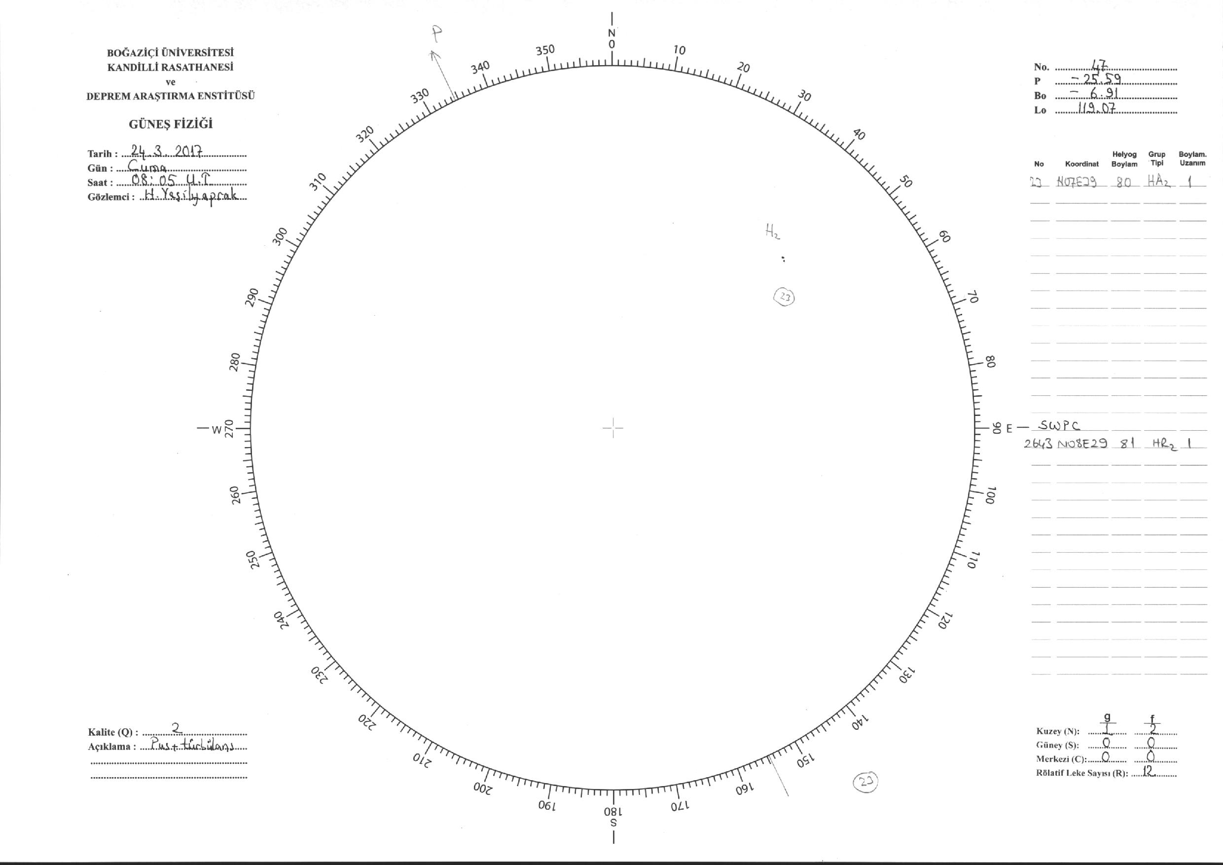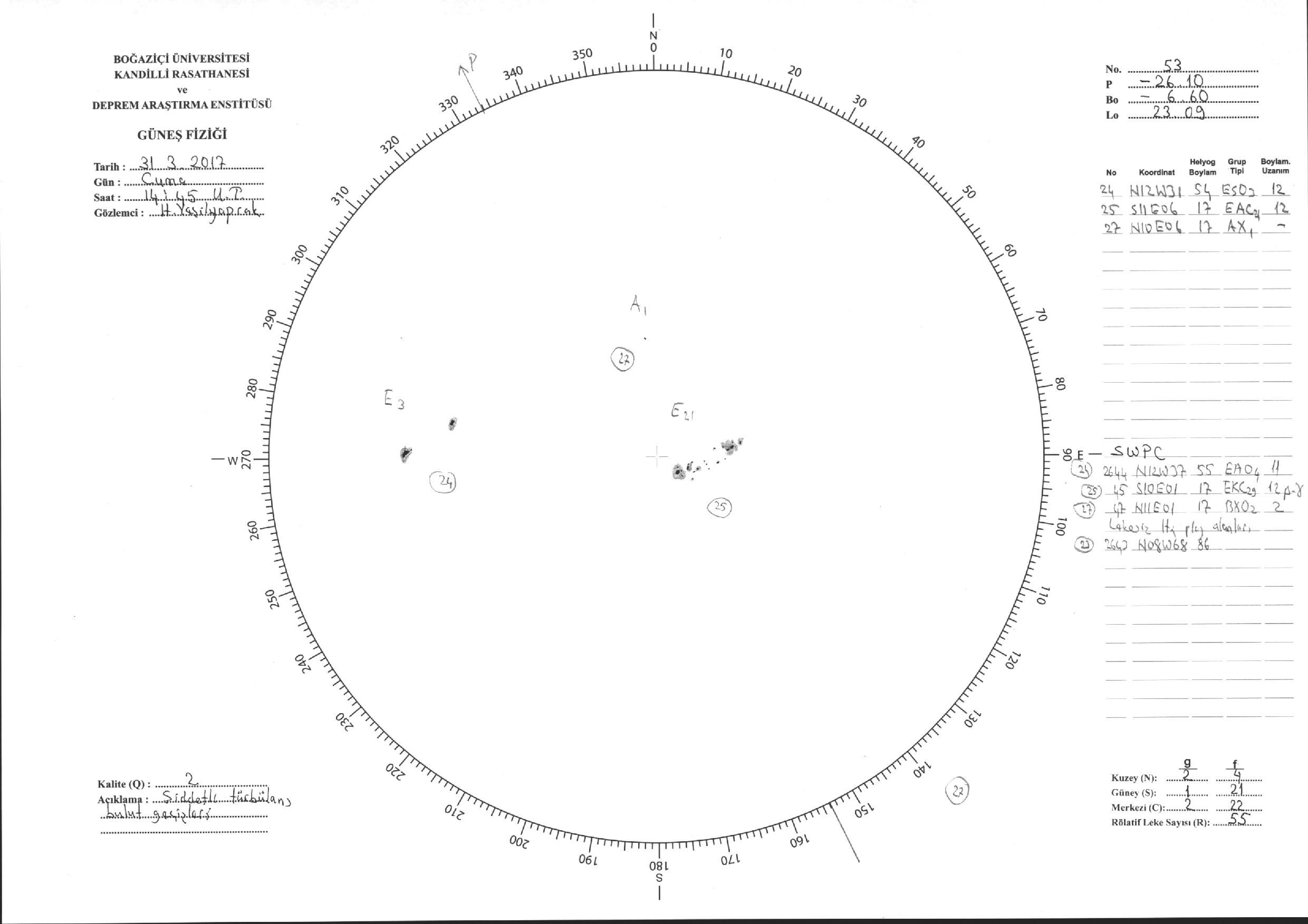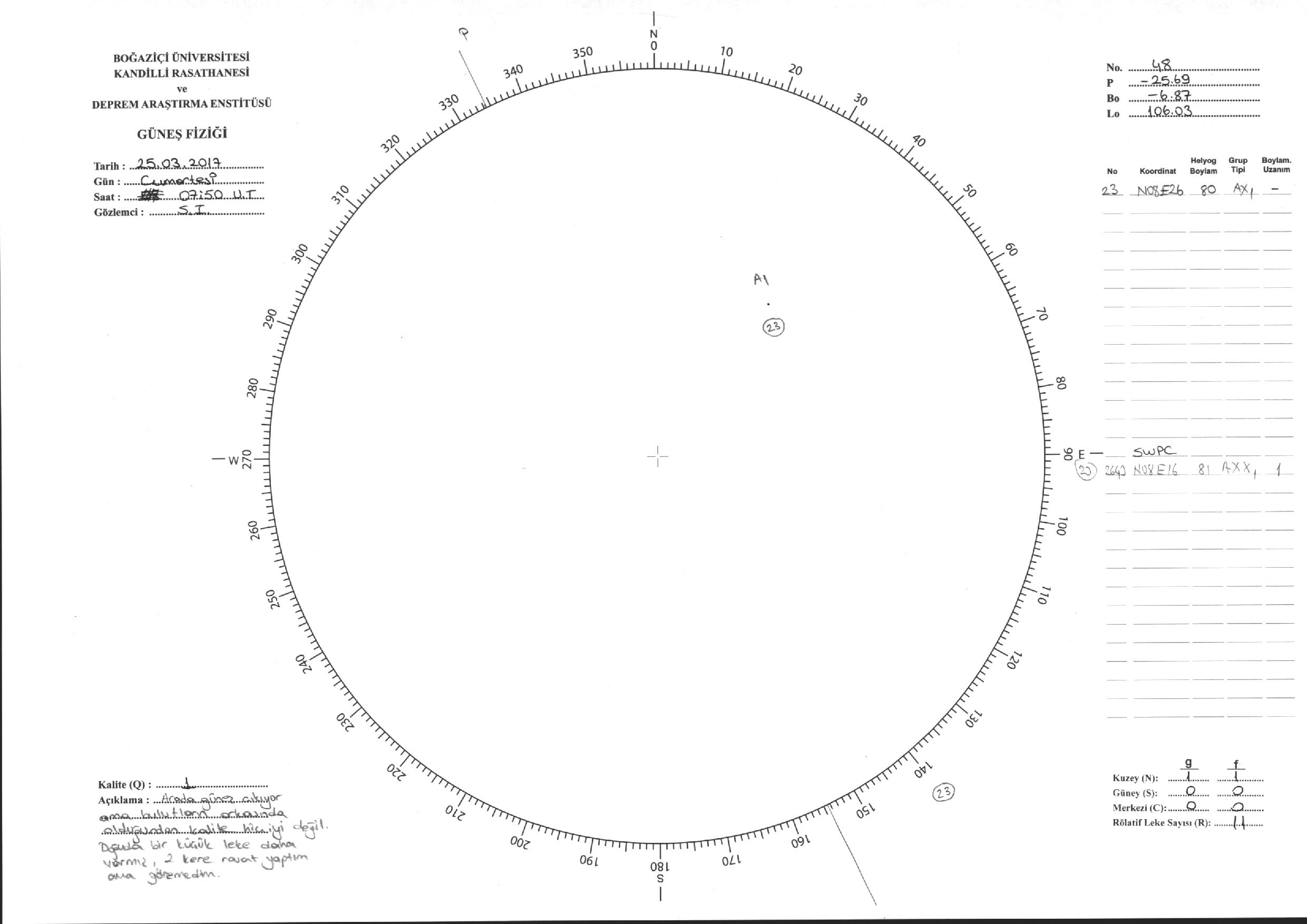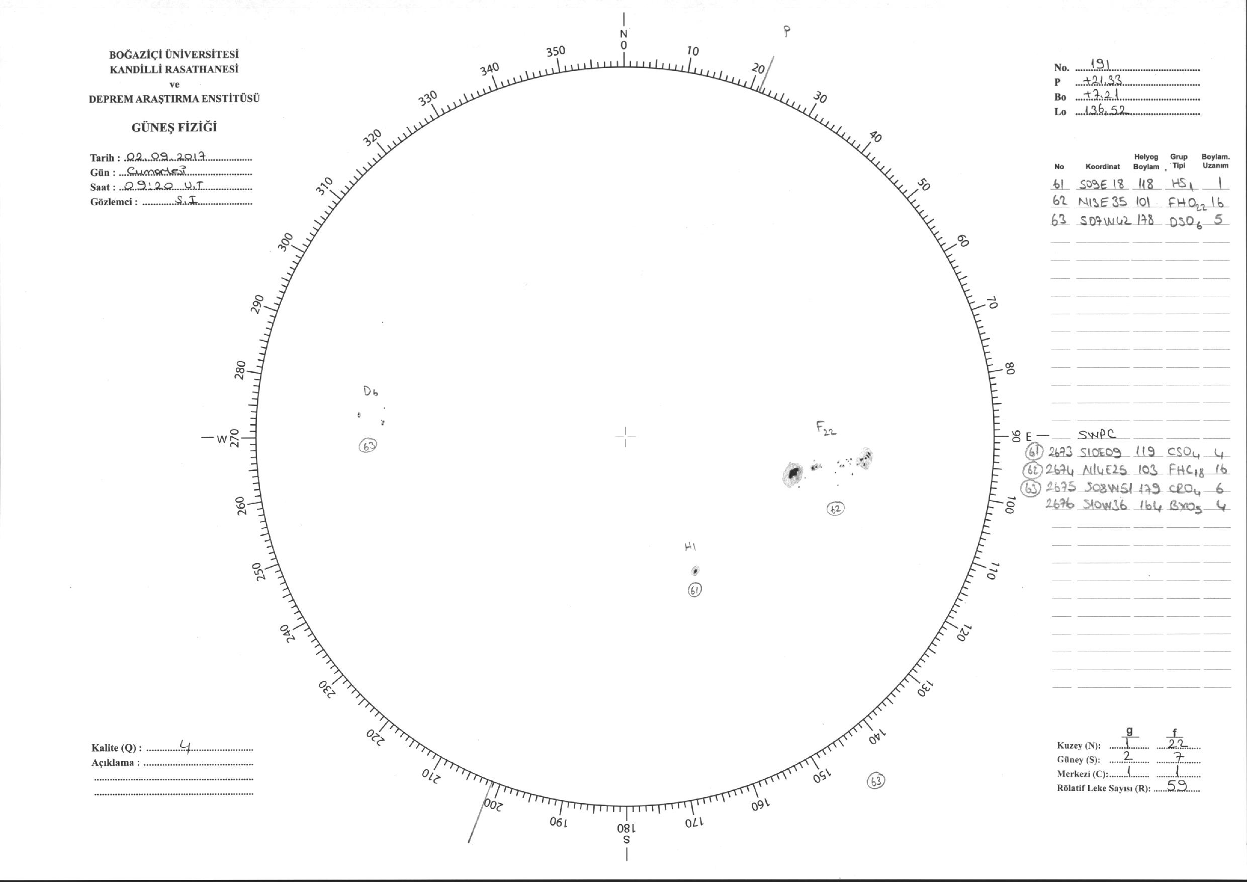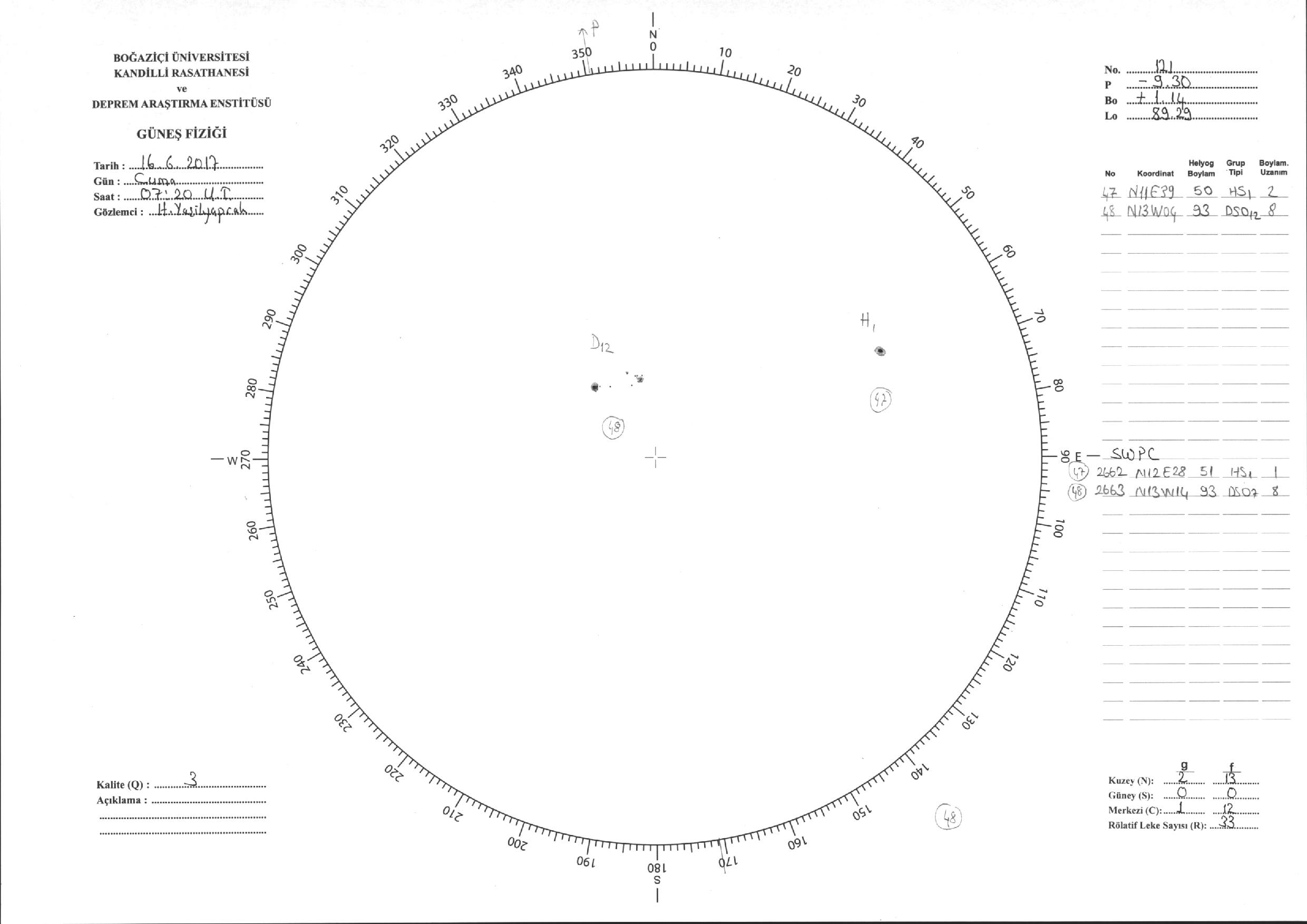 Güneş Lekesi Çizimleri / Kandilli Sunspot Drawings