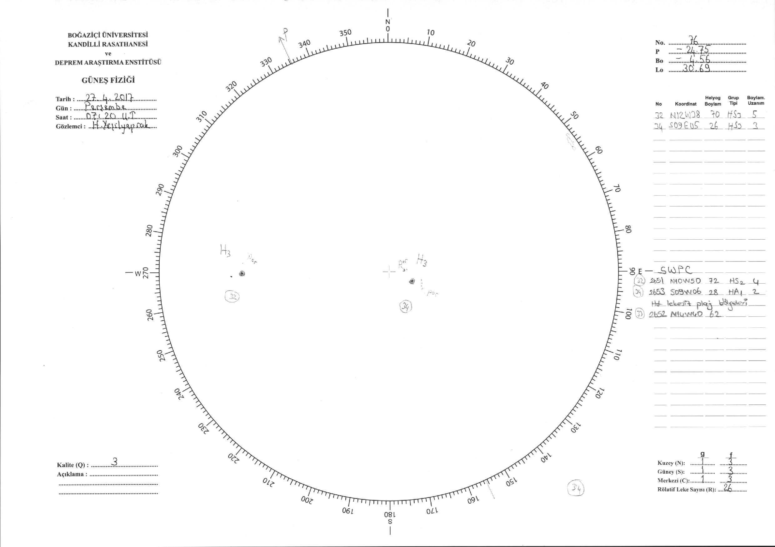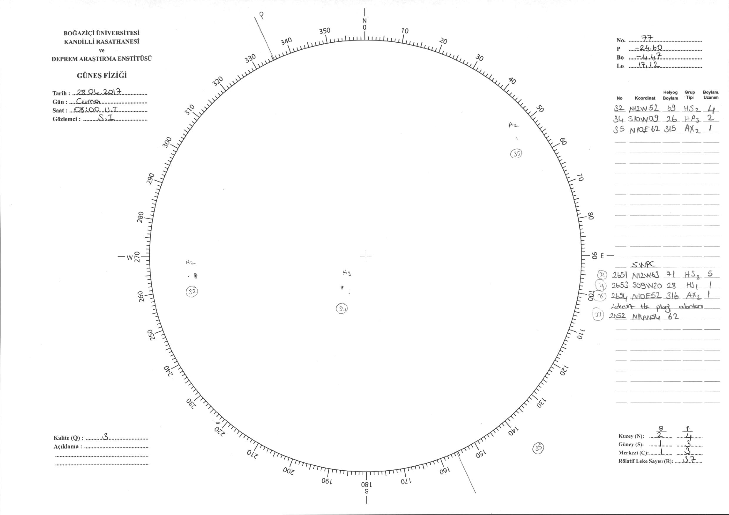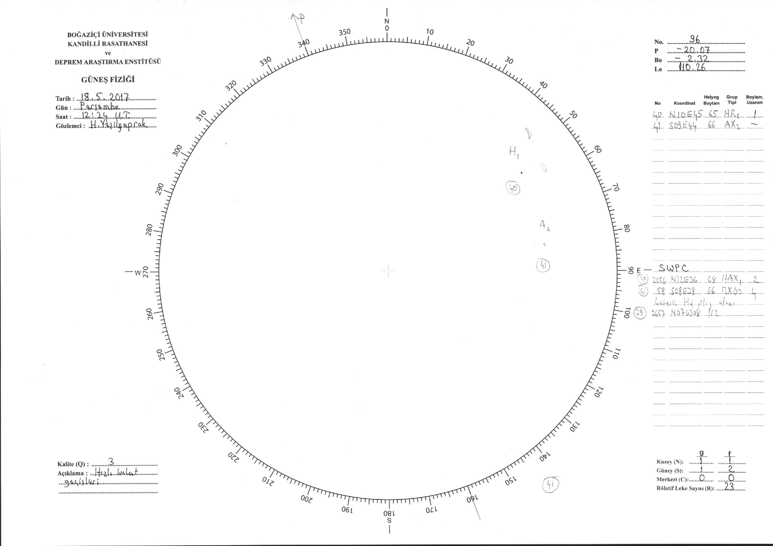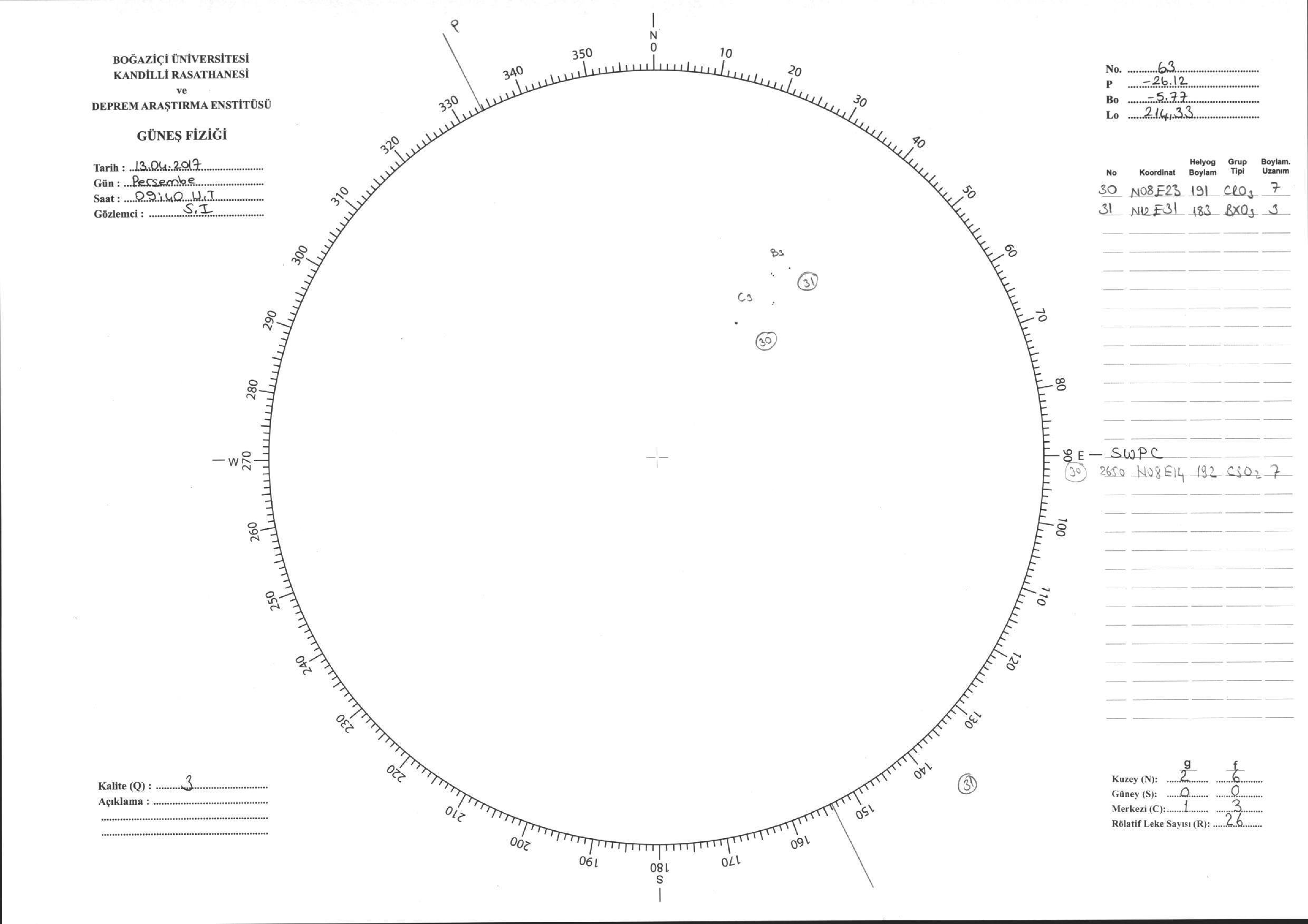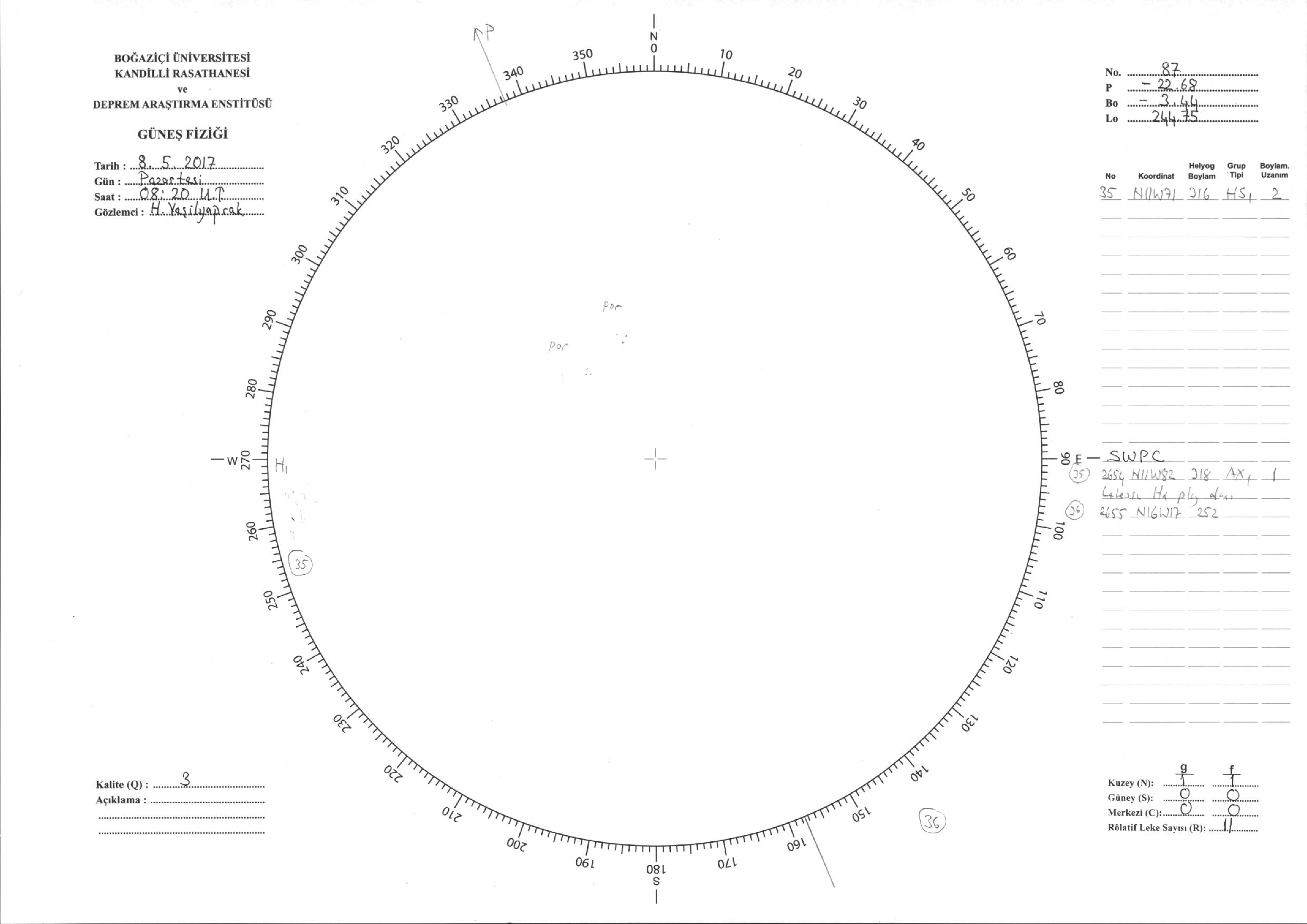 Güneş Lekesi Çizimleri / Kandilli Sunspot Drawings