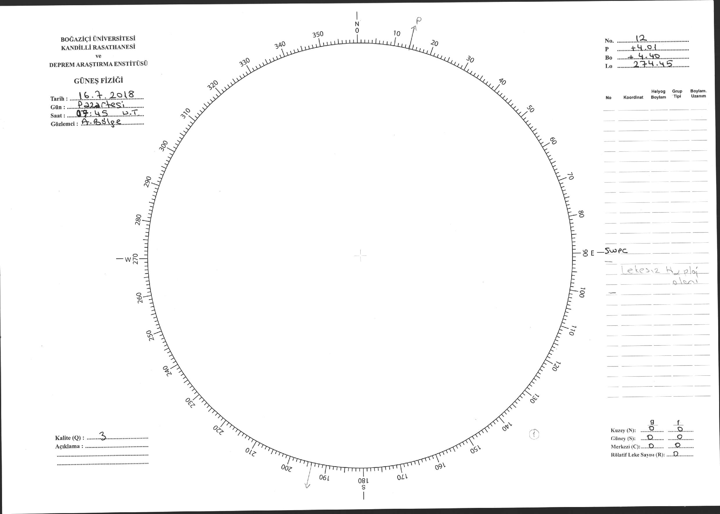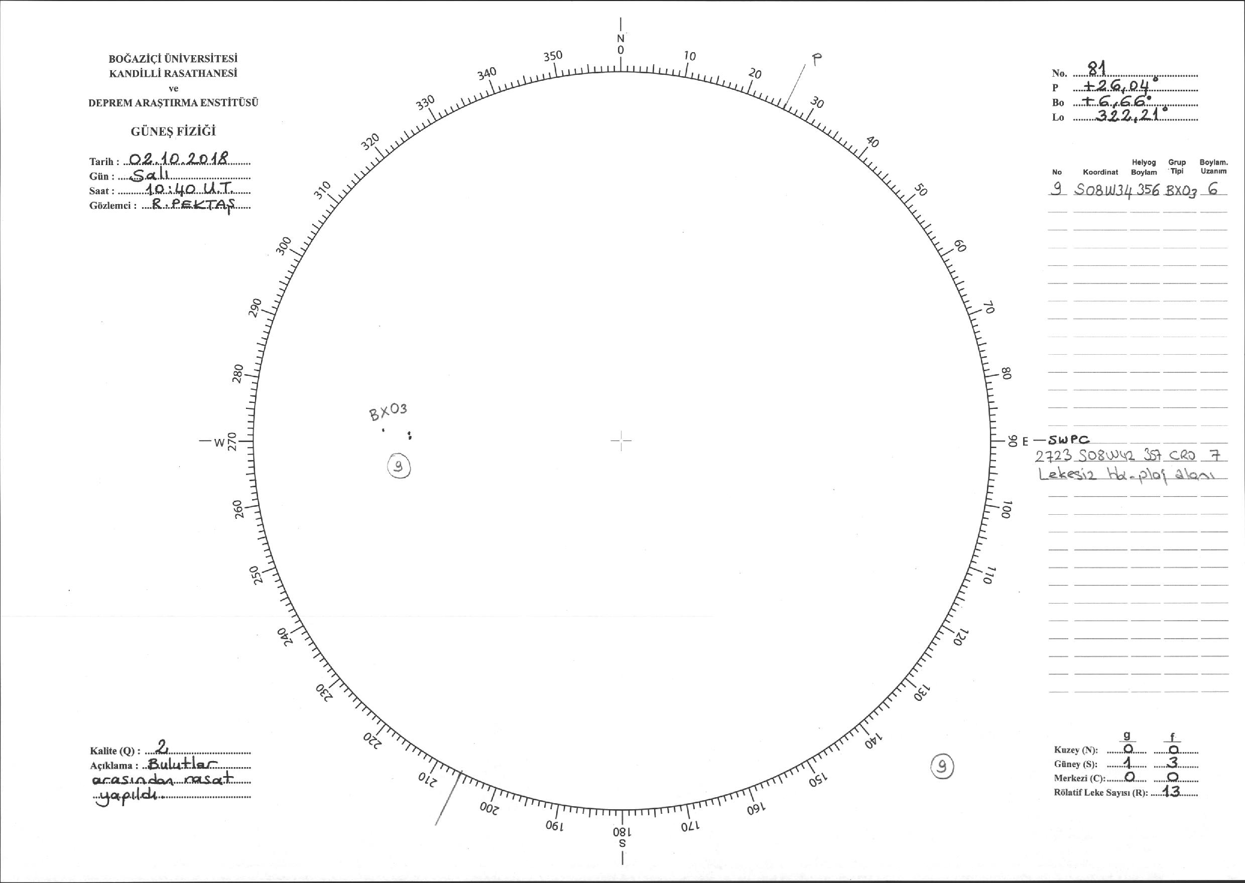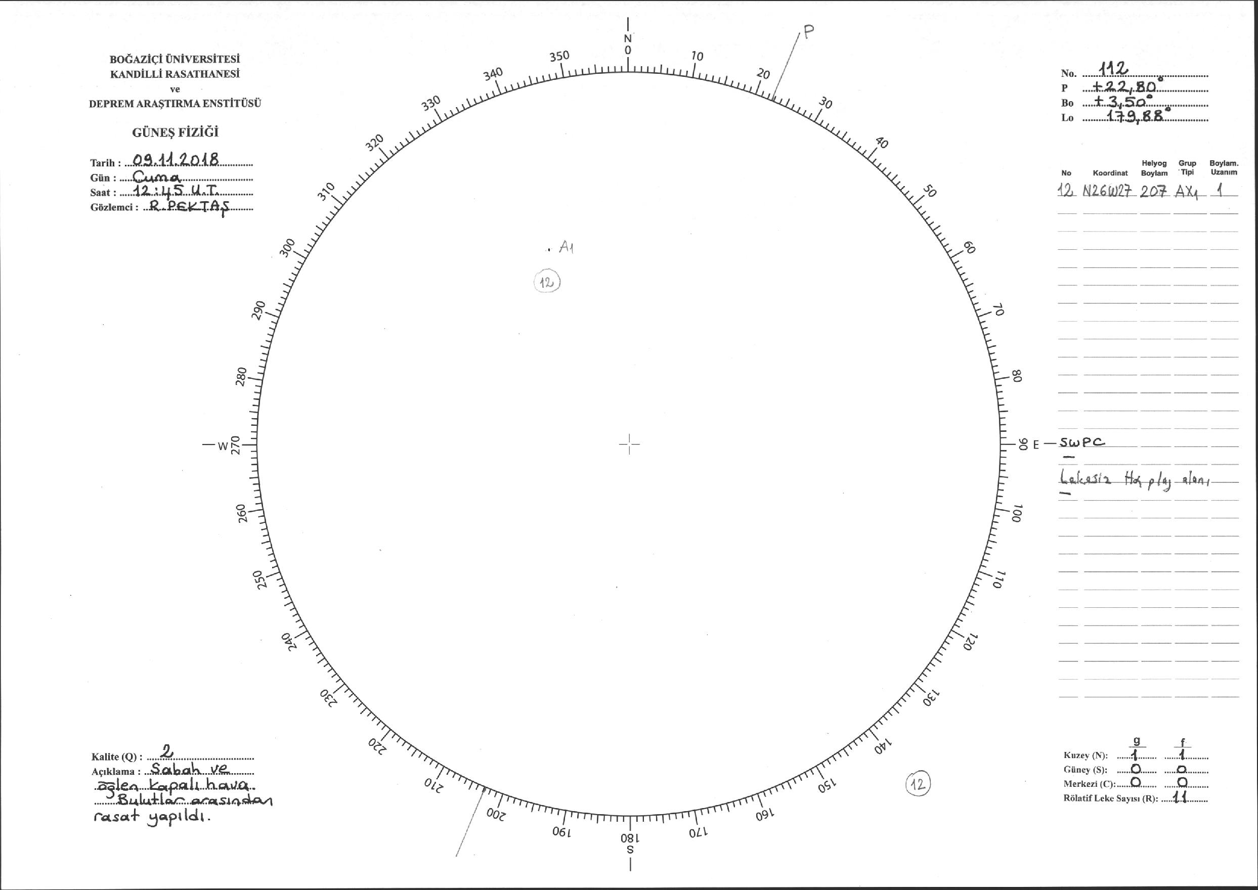Güneş Lekesi Çizimleri / Kandilli Sunspot Drawings