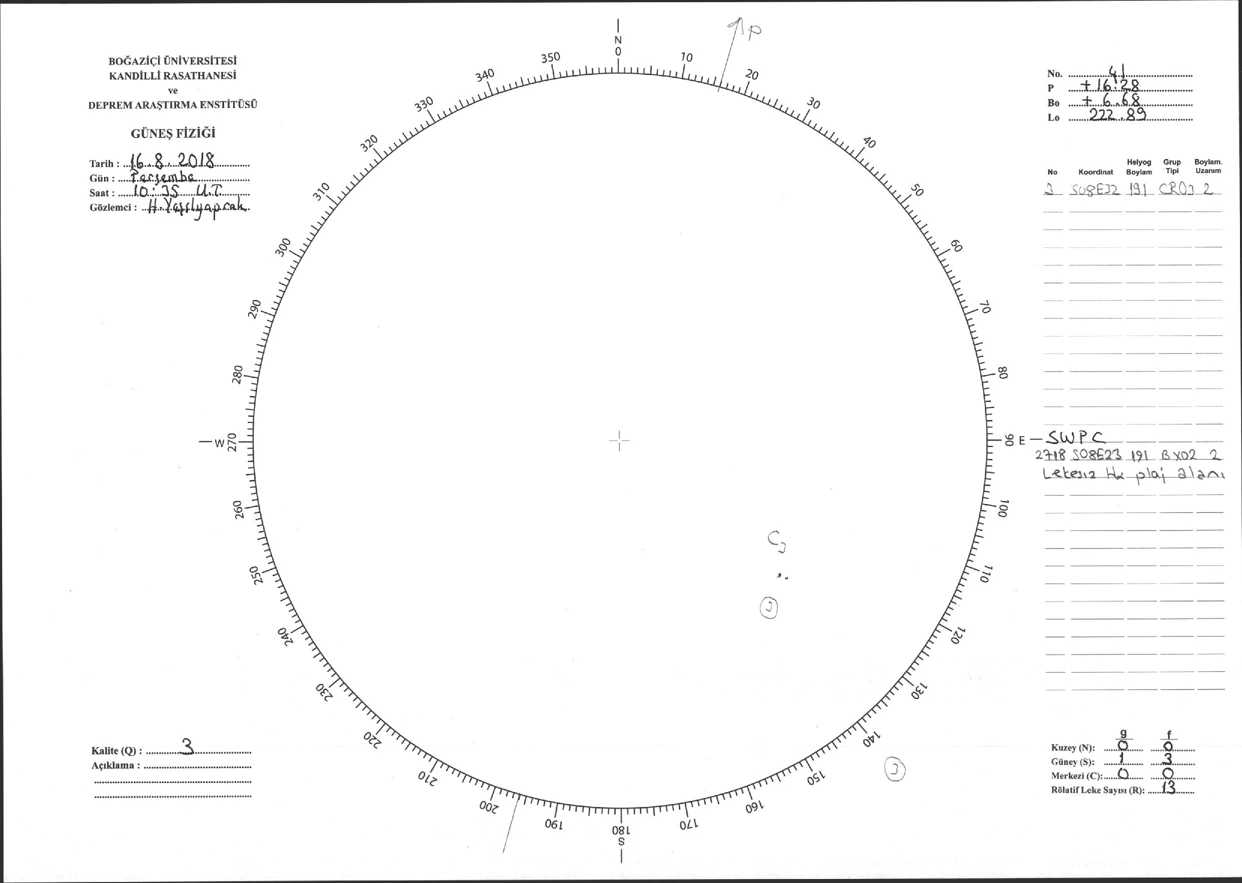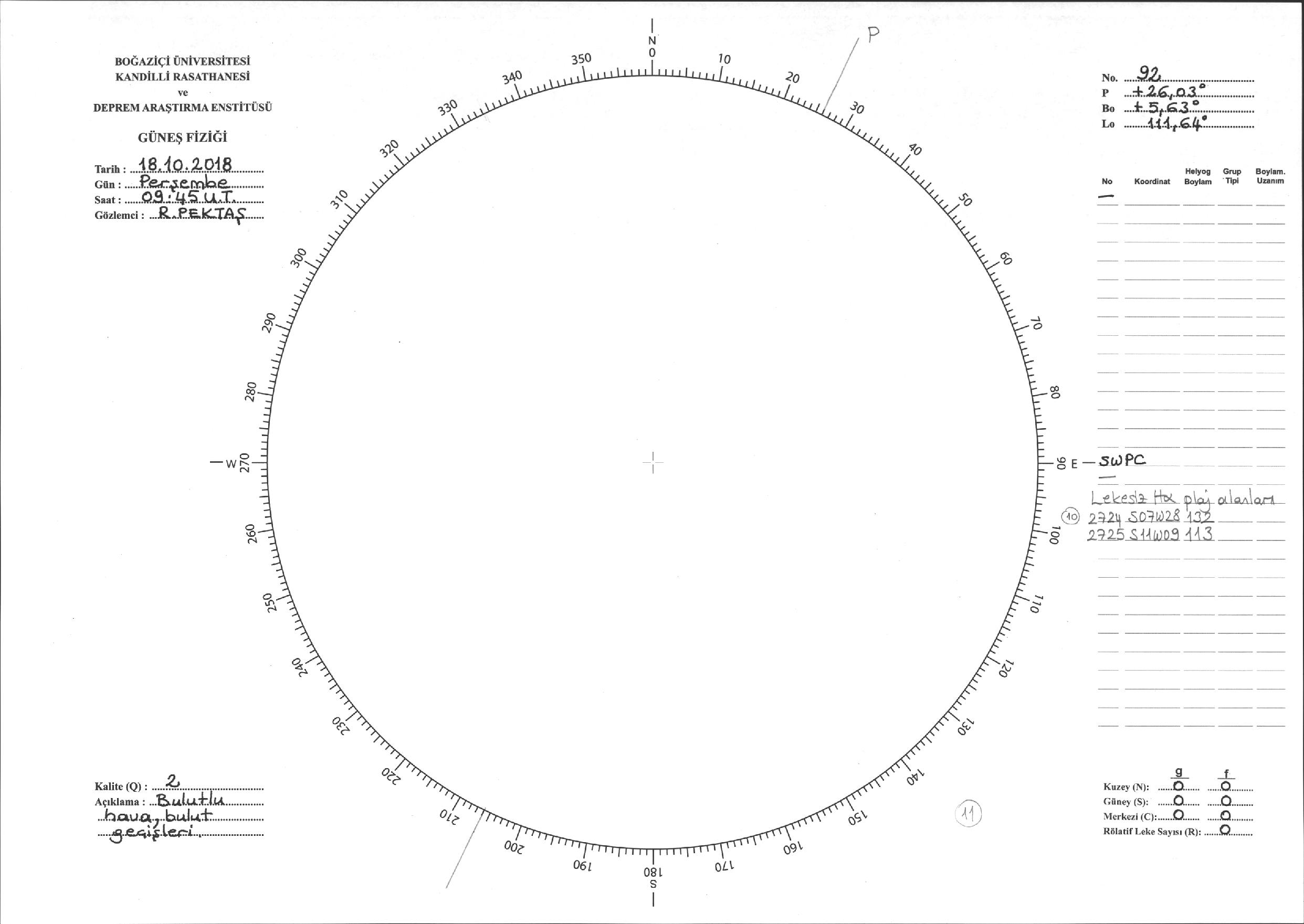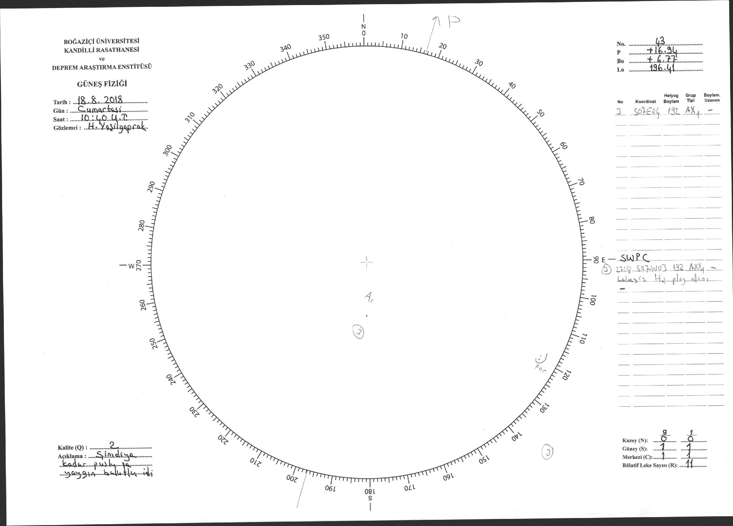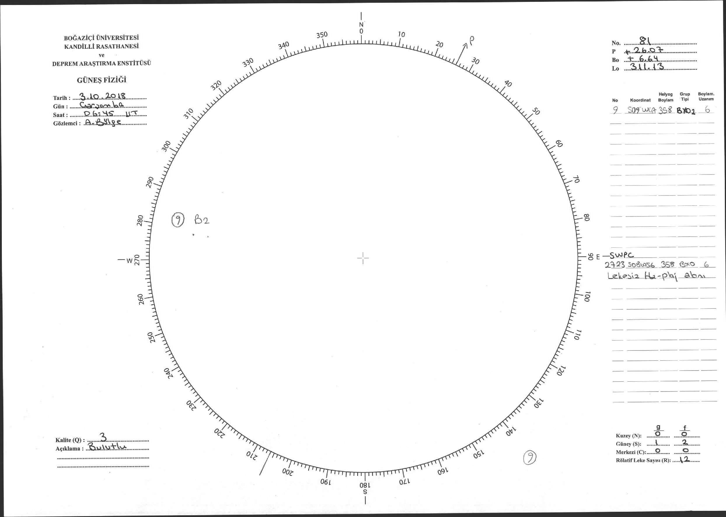Güneş Lekesi Çizimleri / Kandilli Sunspot Drawings