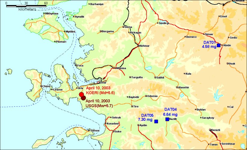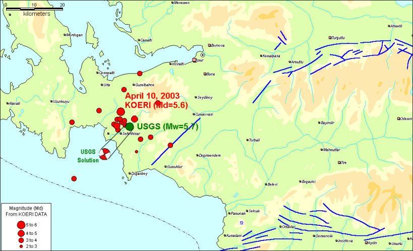 26.8345E (KOERI) 10.0 kilometers Md=5.6 (KOERI) - Mw=5.7 (USGS) |
