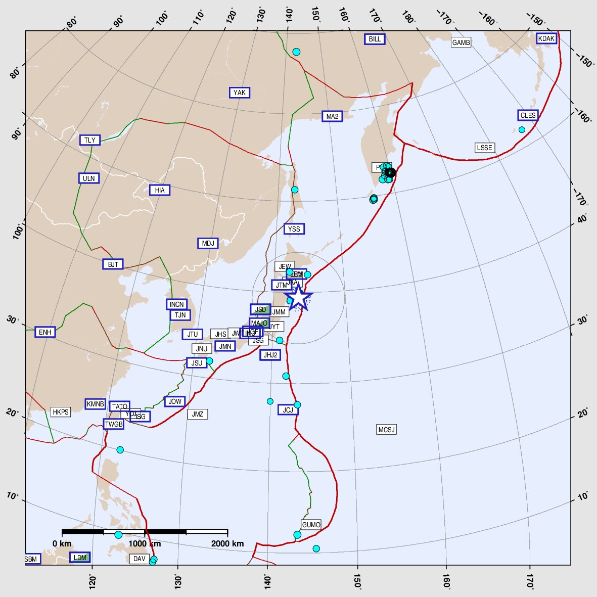 lat: 39.39° lon: 143.42°