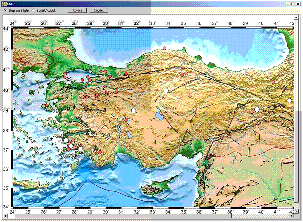 Görüntü.6. Deprem lokasyonlarının haritada görüntülenmesi.