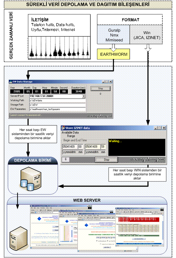 Sayısal Veri Dağıtımı: Çözüme giren istasyolara ilişkin tüm sayısal kayıtlar, sıkıştırılırılarak depolama birimine ve internet erişimli ikinci bir ortama aktarılır.