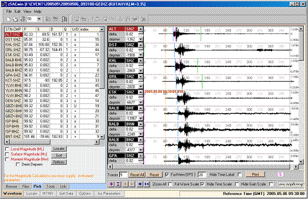 Deprem verilerinin görüntülenmesi ve ilk varışların okunması