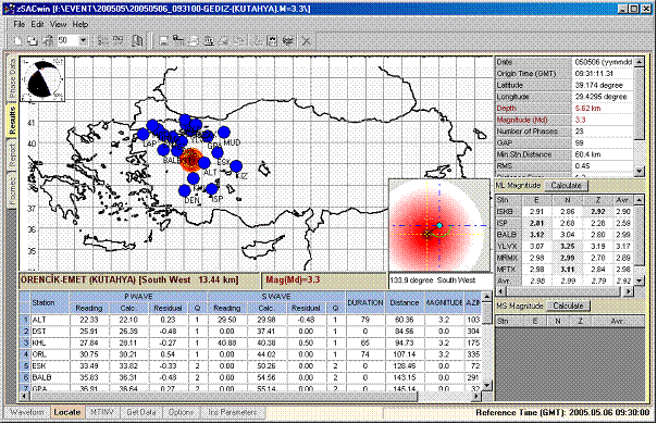 UDİM bünyesinde kullanılan zSacWin yazılımı, depremin çözümünden sonuçların dağıtılması aşamasına kadar, otomatik olarak ya da kullanıcı denetiminde çalışabilecek özelliktedir. zSacWin’in yaptığı işlemler zinciri sonucunda depremle ilgili olarak aşağıdaki bilgilere ulaşılır.